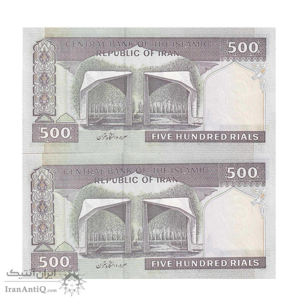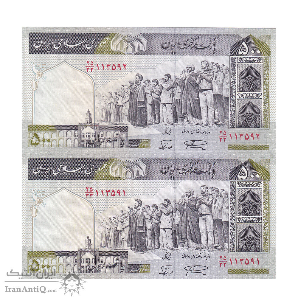 اسکناس 500 ریال (نمازی - نوربخش) فیلیگران امام - تیپ یک - نخ کامپیوتری - جایگزین - جفت - UNC64 - جمهوری اسلامی