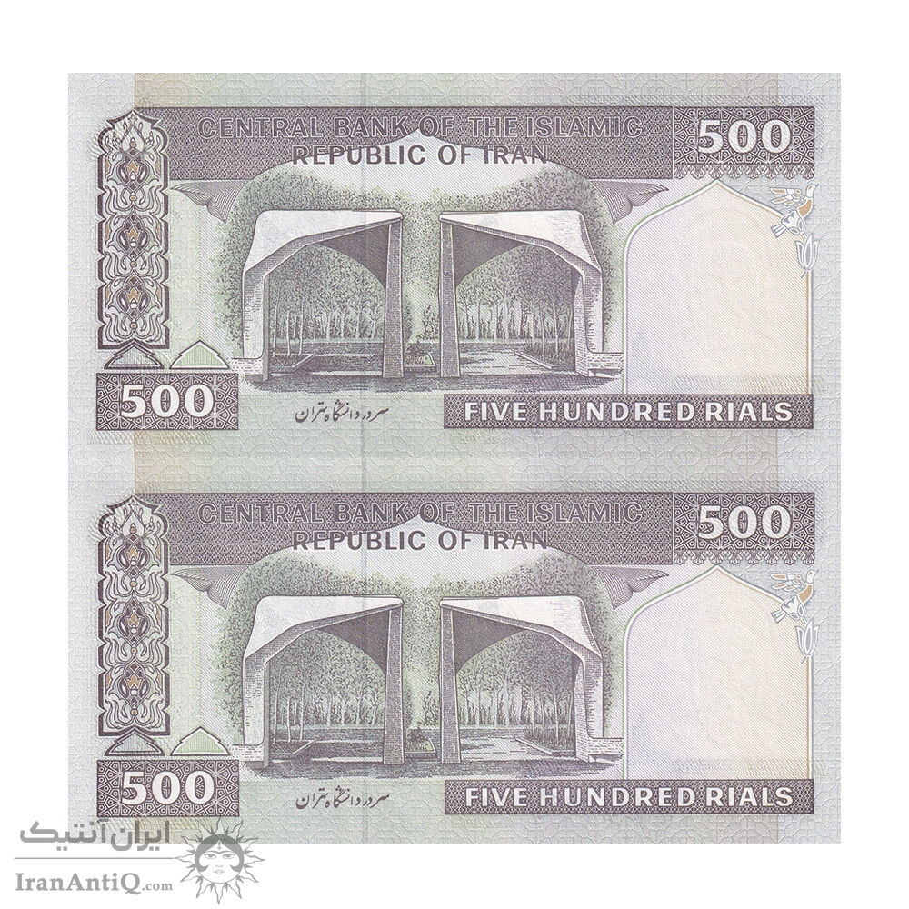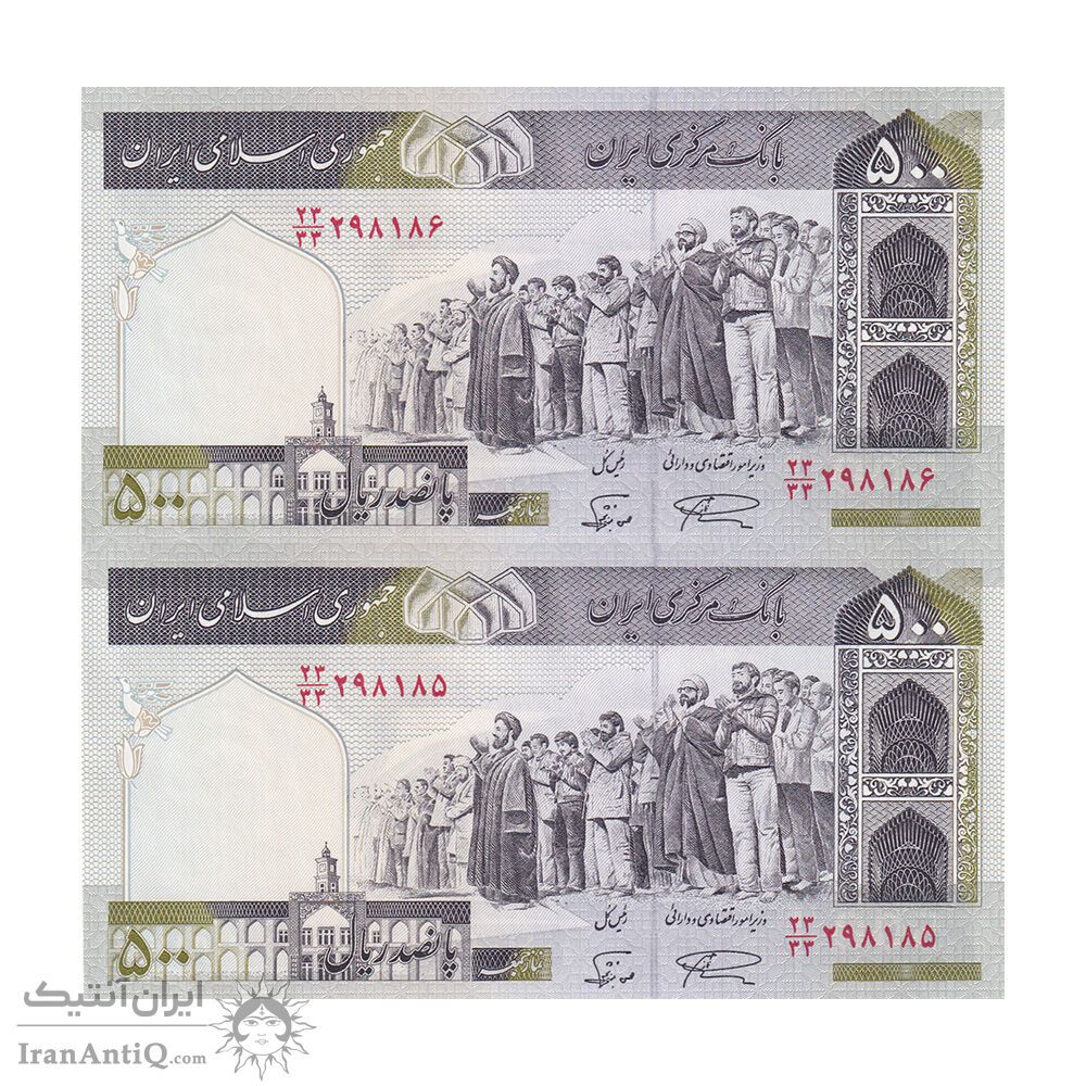 اسکناس 500 ریال (نمازی - نوربخش) فیلیگران امام - تیپ یک - نخ کامپیوتری - جایگزین - جفت - UNC63 - جمهوری اسلامی