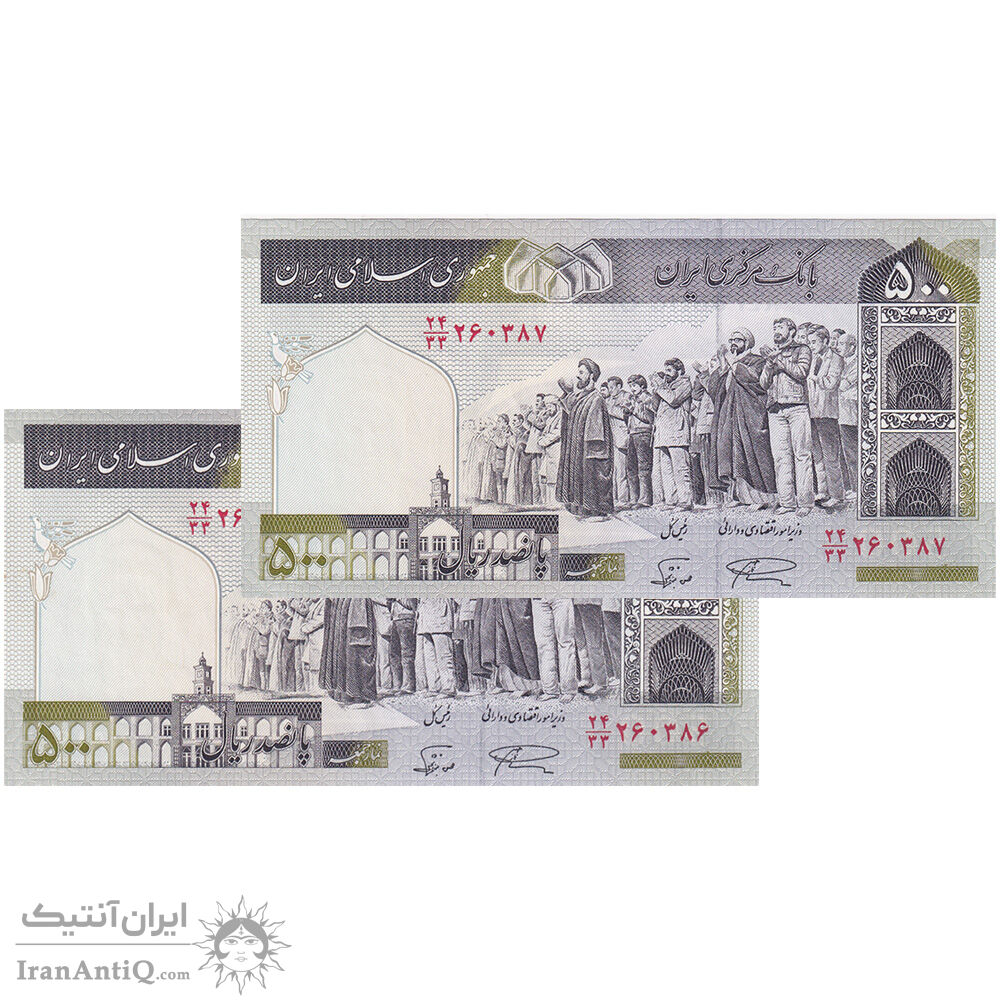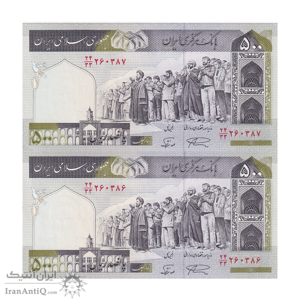 اسکناس 500 ریال (نمازی - نوربخش) فیلیگران امام - تیپ یک - نخ کامپیوتری - جایگزین - جفت - UNC63 - جمهوری اسلامی