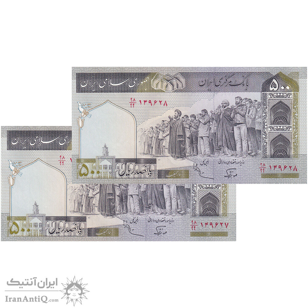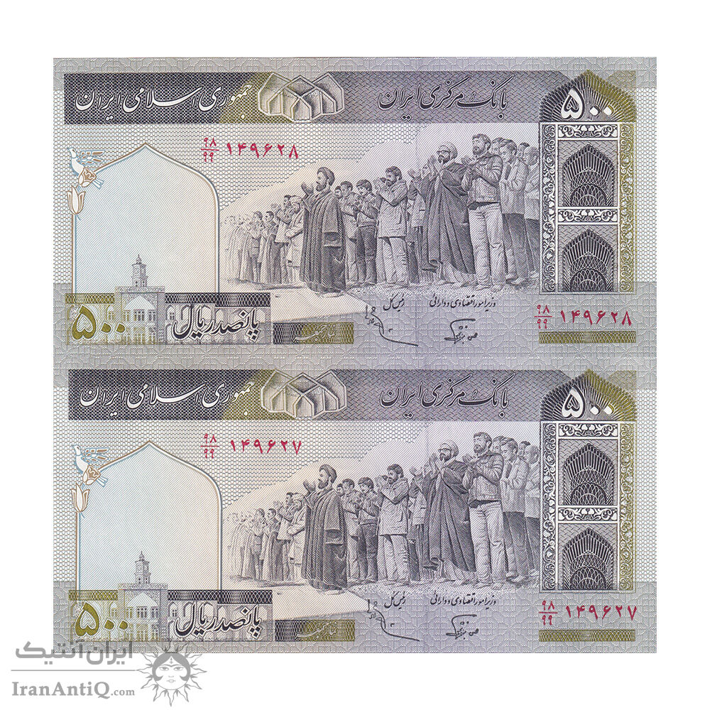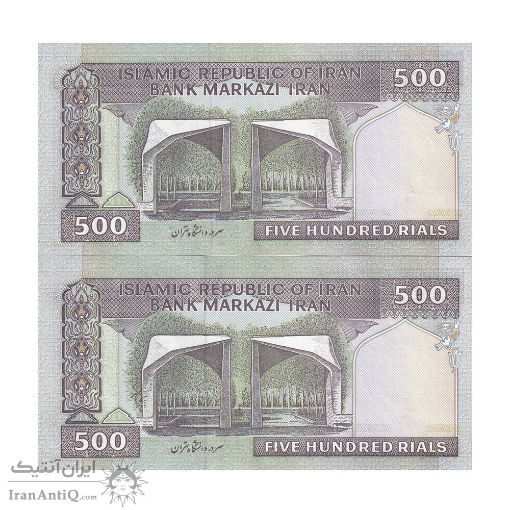 اسکناس 500 ریال (نوربخش - عادلی) - فیلیگران الله - جایگزین - جفت - UNC64 - جمهوری اسلامی