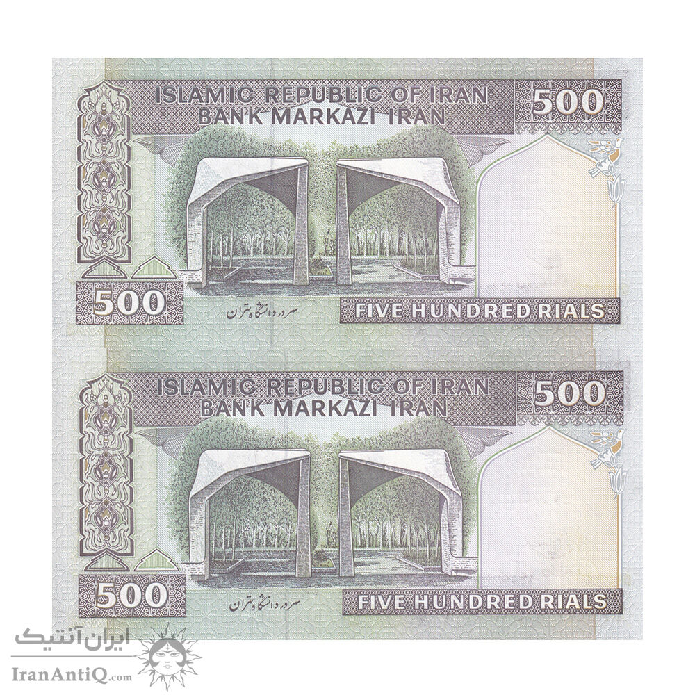 اسکناس 500 ریال (نوربخش - عادلی) امضاء کوچک - شماره بزرگ - جفت - UNC63 - جمهوری اسلامی