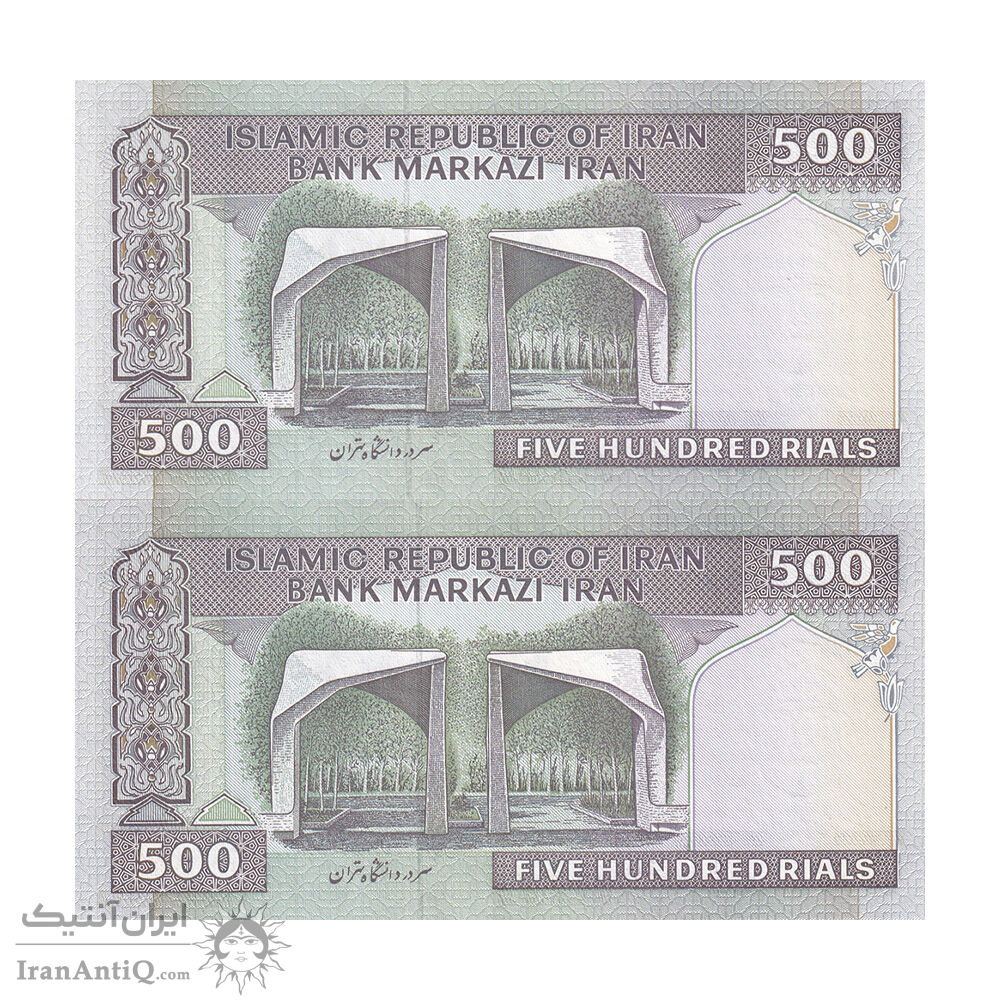 اسکناس 500 ریال (نوربخش - عادلی) شماره کوچک - جفت - UNC63 - جمهوری اسلامی