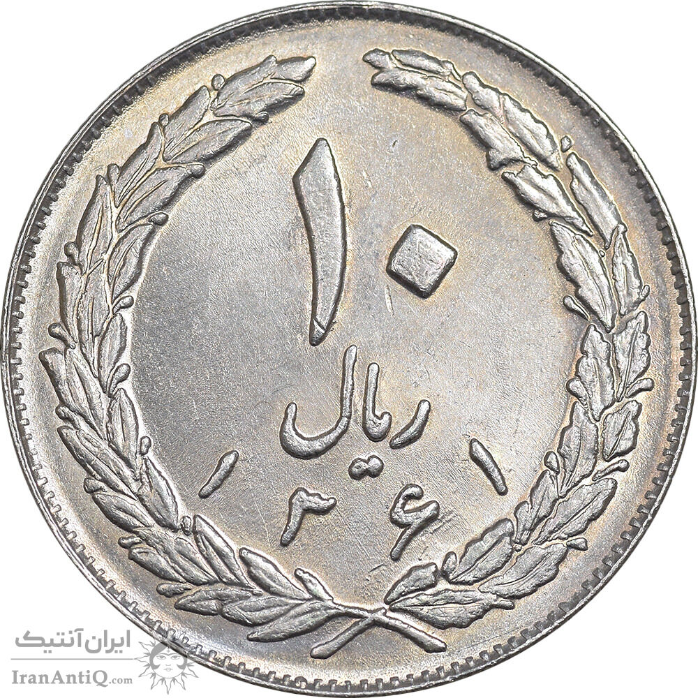 سکه 10 ریال 1361 - تاریخ بزرگ پشت باز - MS62 - جمهوری اسلامی