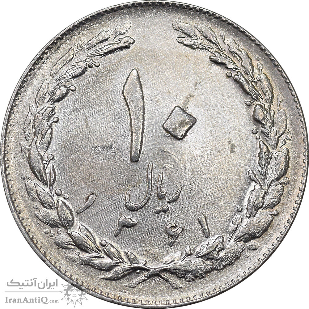 سکه 10 ریال 1361 - تاریخ کوچک پشت باز - MS61 - جمهوری اسلامی
