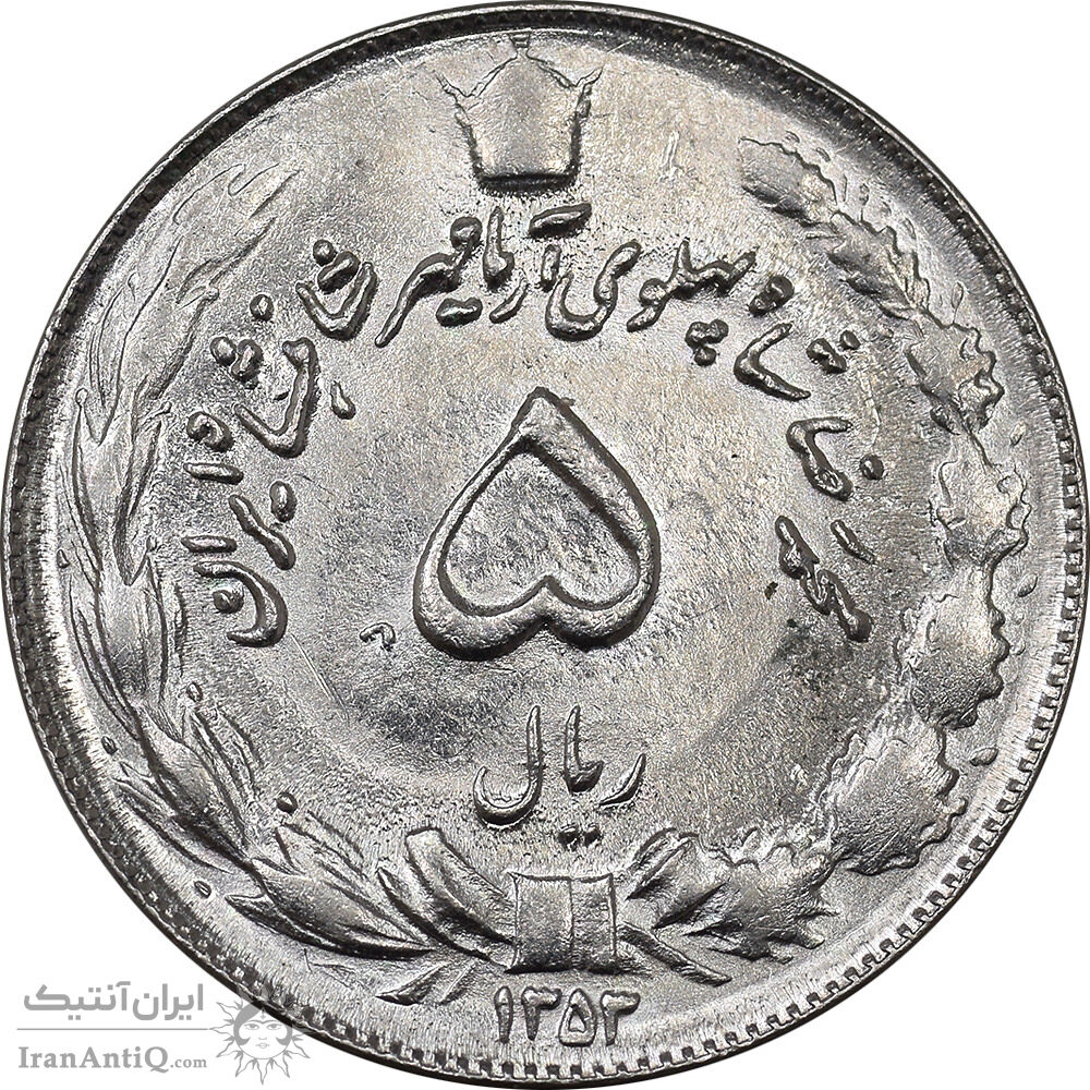 سکه 5 ریال 1353 آریامهر - MS63 - محمد رضا شاه