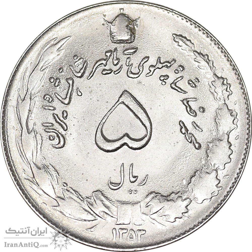 سکه 5 ریال 1353 آریامهر - MS62 - محمد رضا شاه