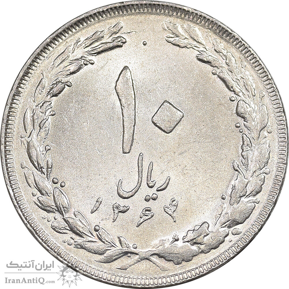 Iran 10 rials 1364 Coin - Large zero, Wide letters - MS61 - Islamic Republic