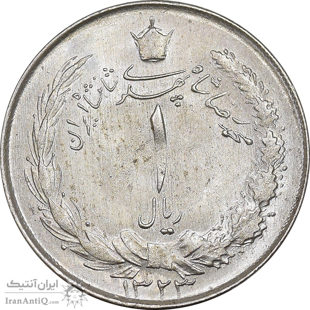سکه 1 ریال 1323 نقره - MS61 - محمد رضا شاه