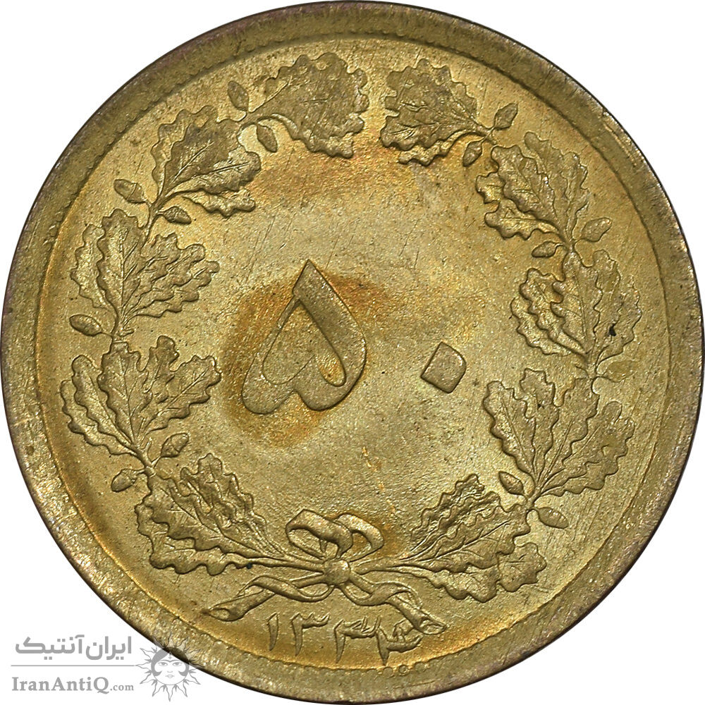 سکه 50 دینار 1334 برنز - MS63 - محمد رضا شاه