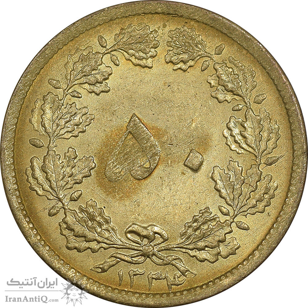 سکه 50 دینار 1334 برنز - AU58 - محمد رضا شاه