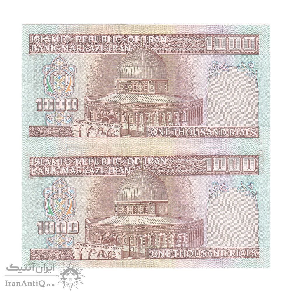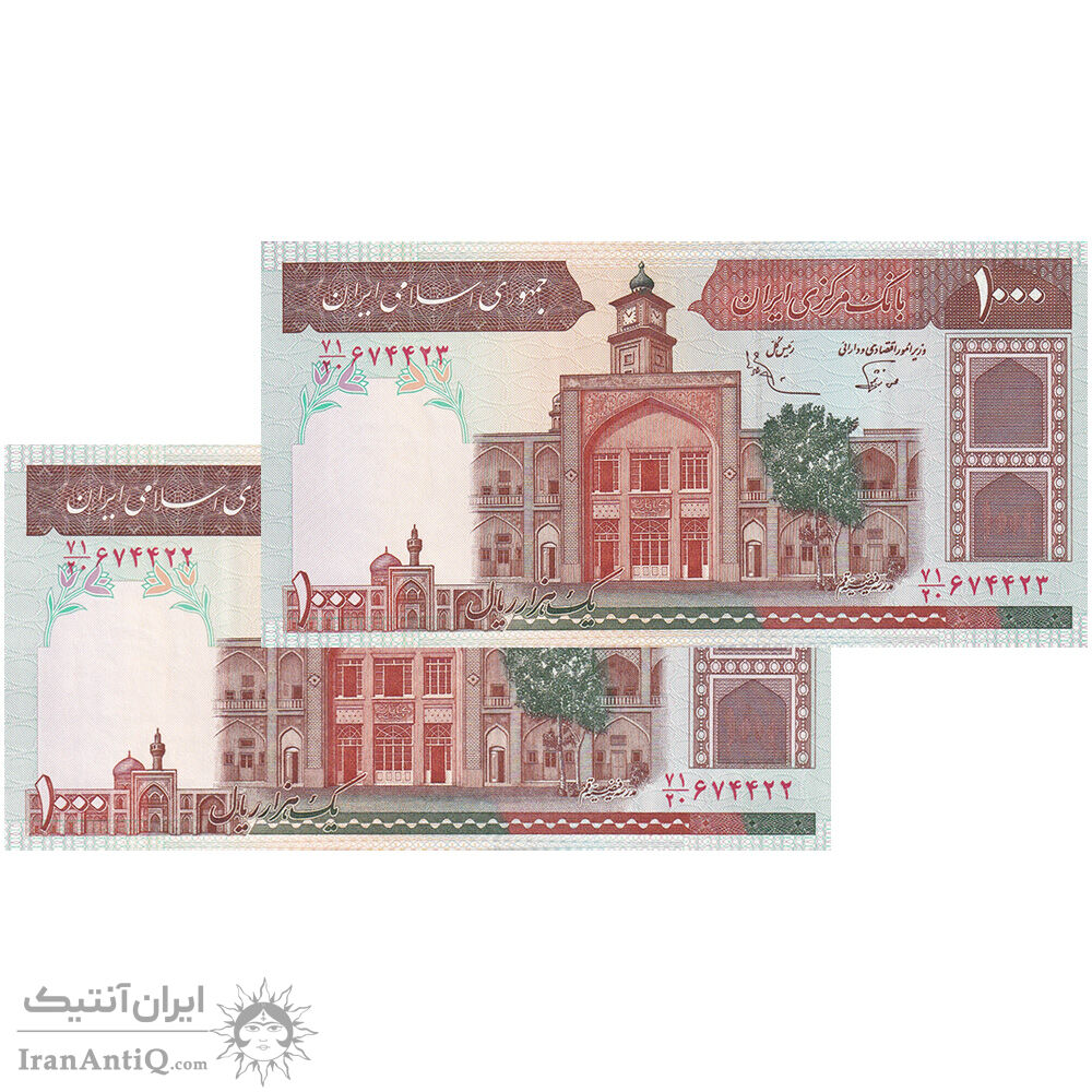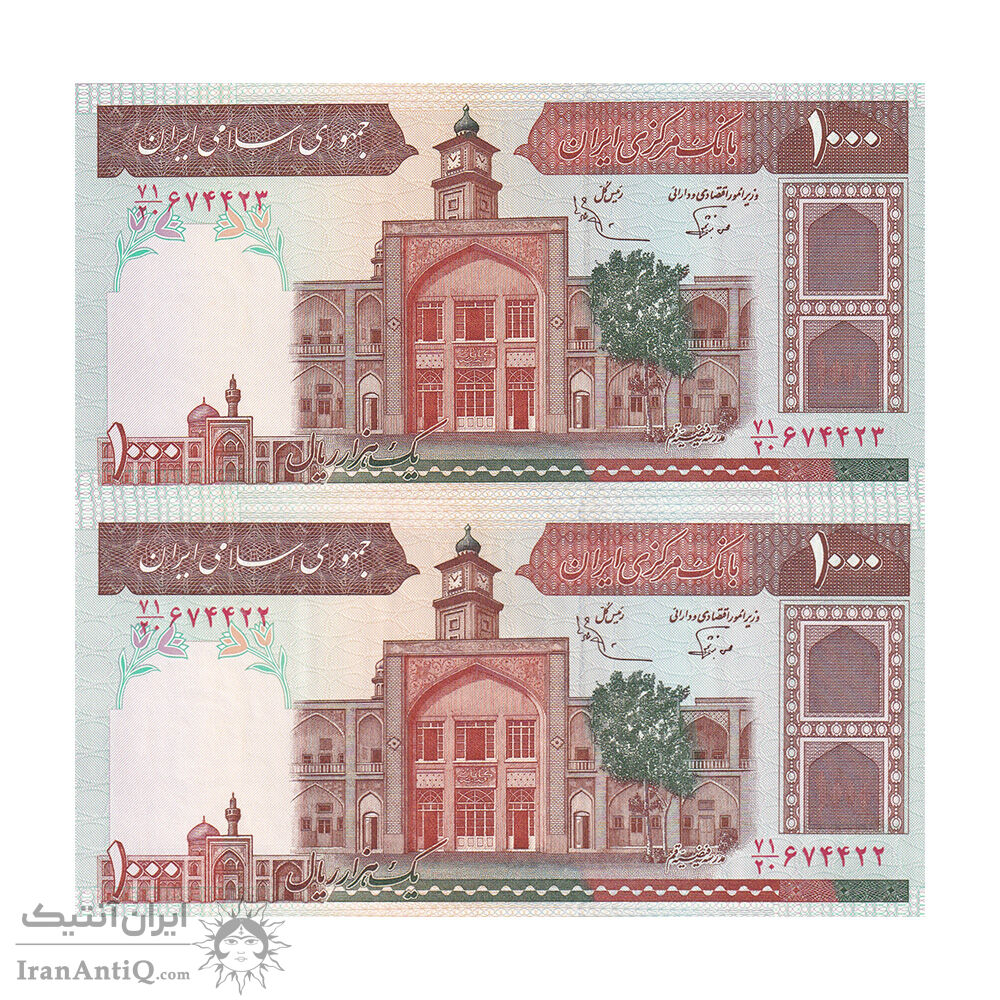 اسکناس 1000 ریال (نوربخش - عادلی) شماره بزرگ - امضاء بزرگ - جفت - UNC63 - جمهوری اسلامی