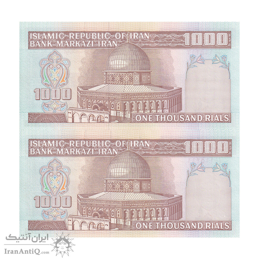 اسکناس 1000 ریال (نوربخش - عادلی) امضاء کوچک - شماره بزرگ - جفت - UNC63 - جمهوری اسلامی