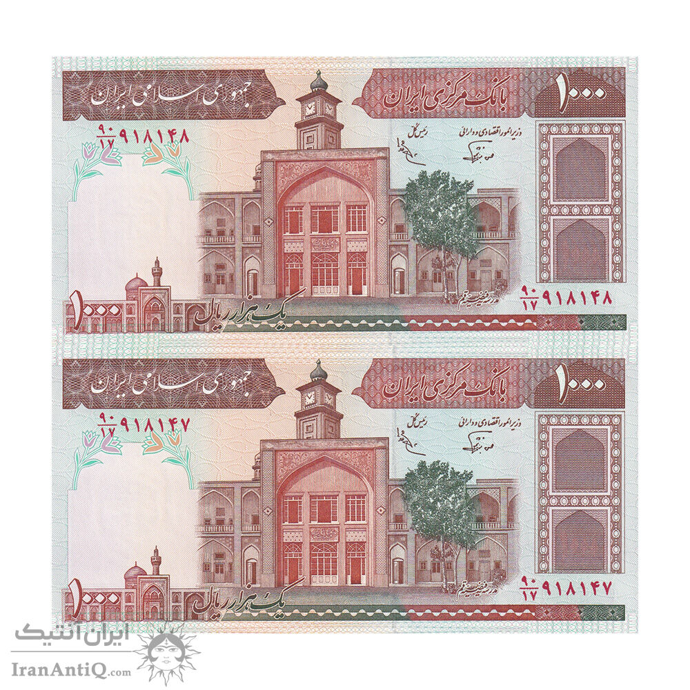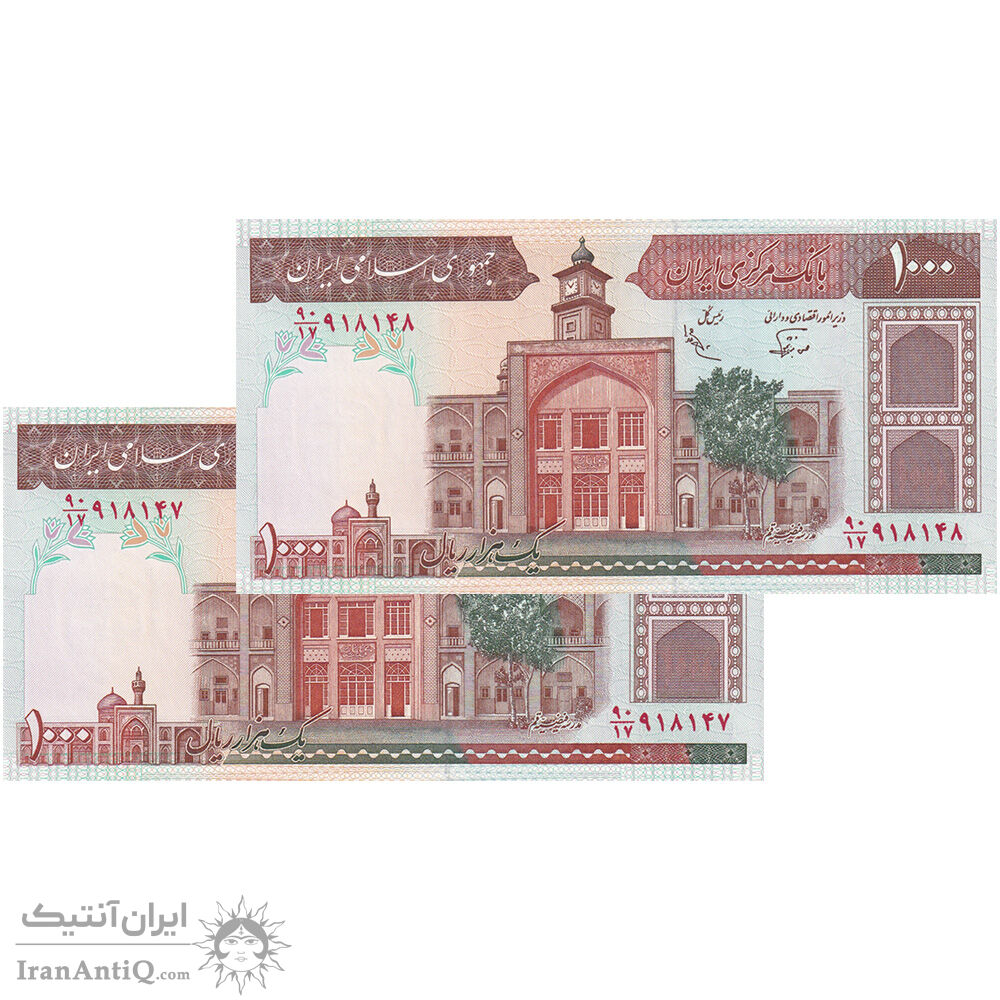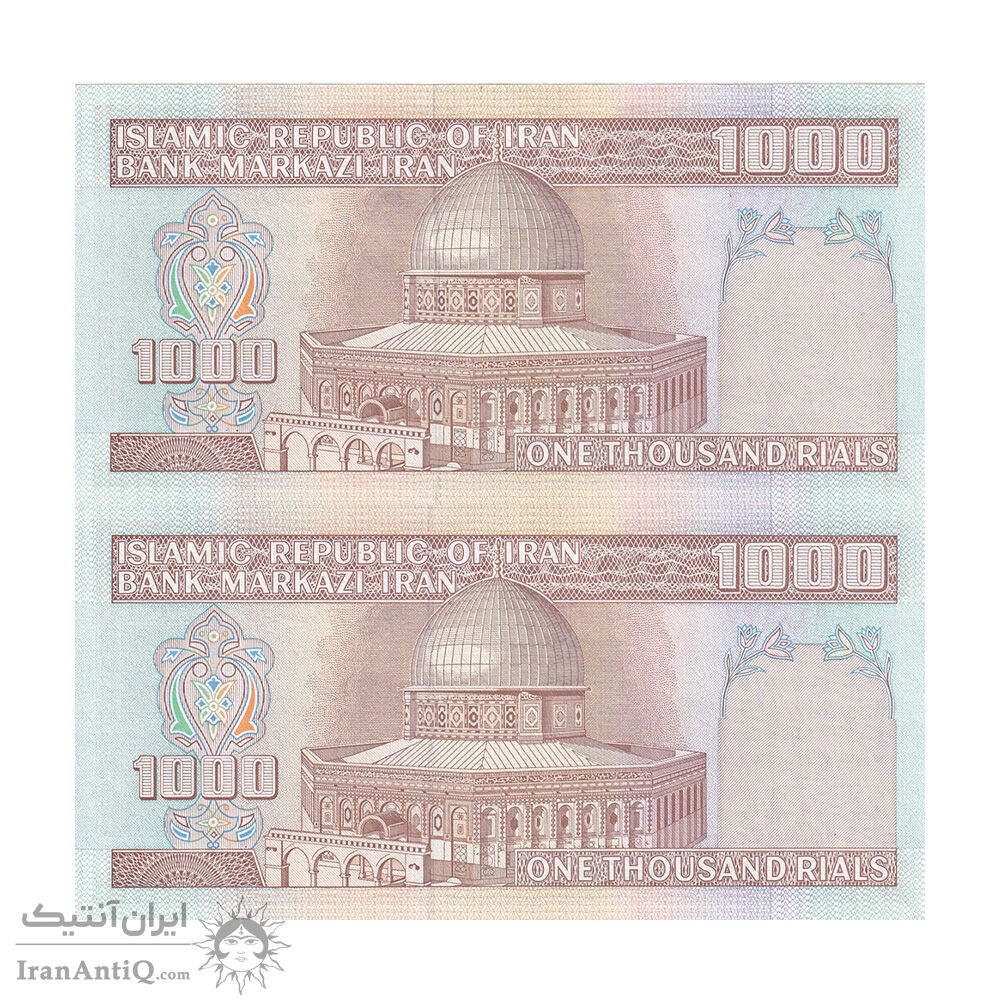 اسکناس 1000 ریال (نوربخش - عادلی) امضاء کوچک - شماره بزرگ - جفت - UNC62 - جمهوری اسلامی