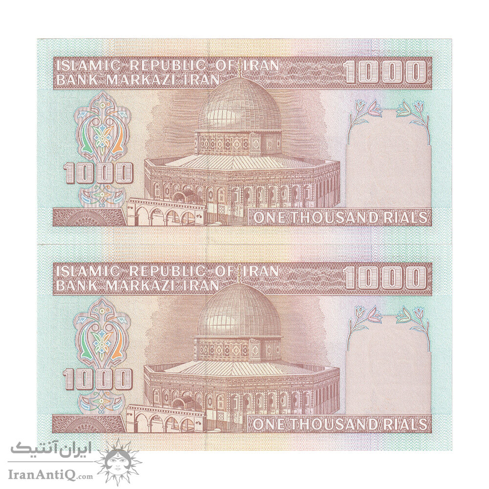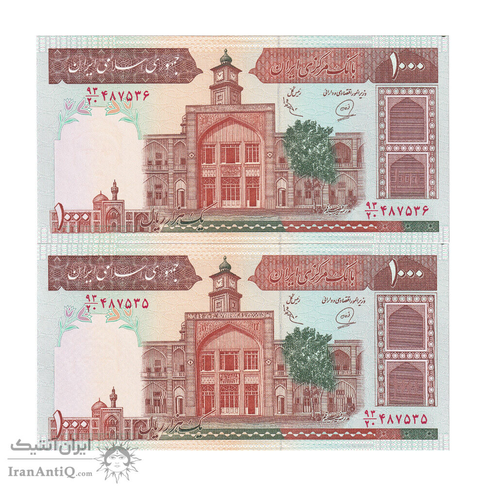 اسکناس 1000 ریال (محمدخان - عادلی) شماره بزرگ - نخ نستعلیق - جفت - UNC64 - جمهوری اسلامی