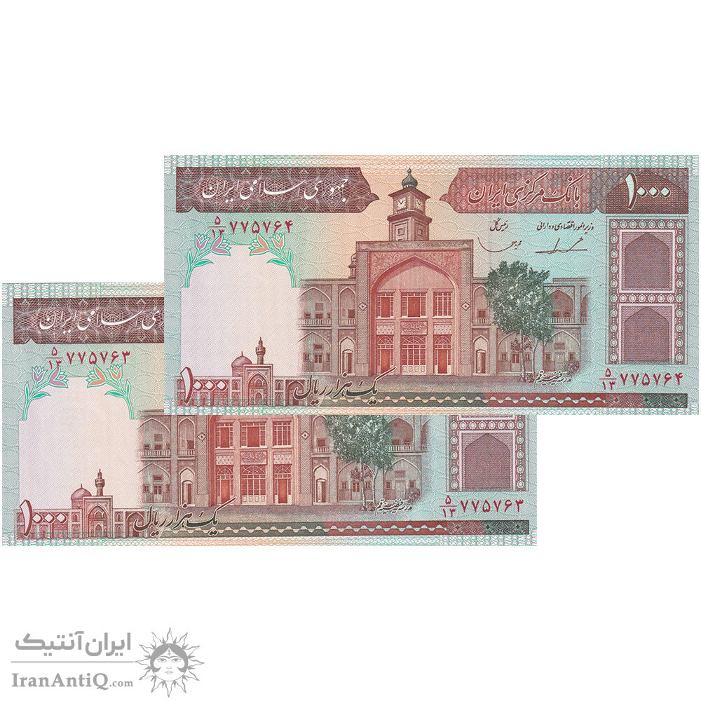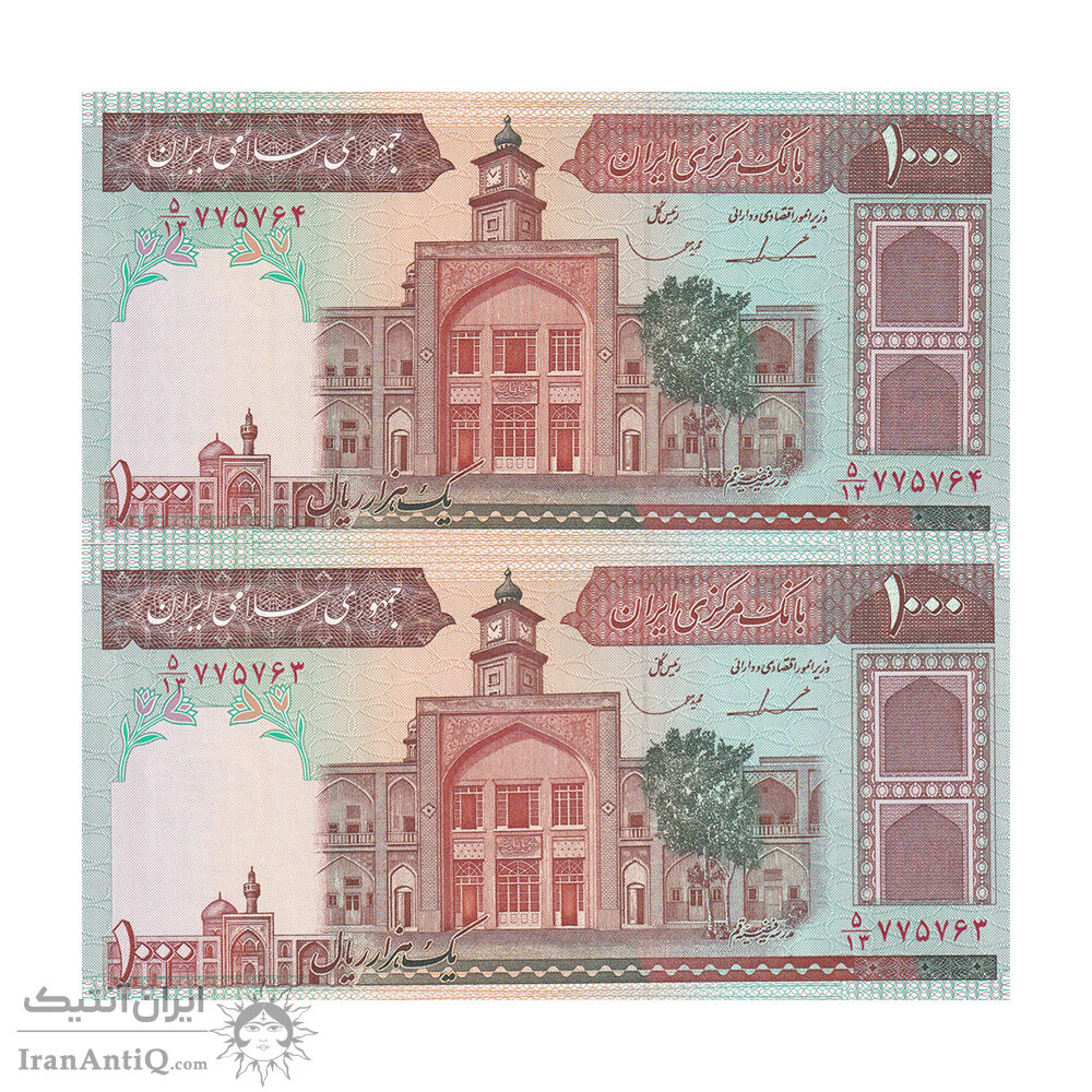 اسکناس 1000 ریال (ایروانی - قاسمی) فیلیگران بدون خط یقه - جفت - UNC63 - جمهوری اسلامی
