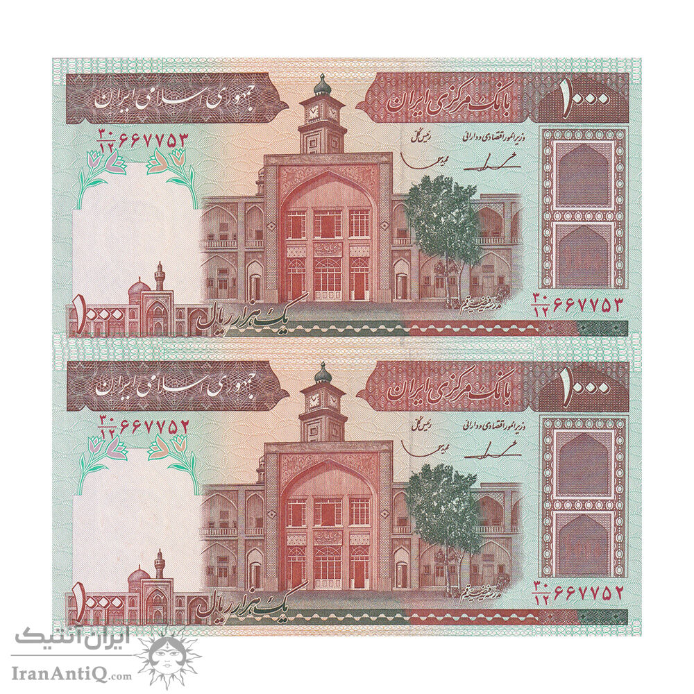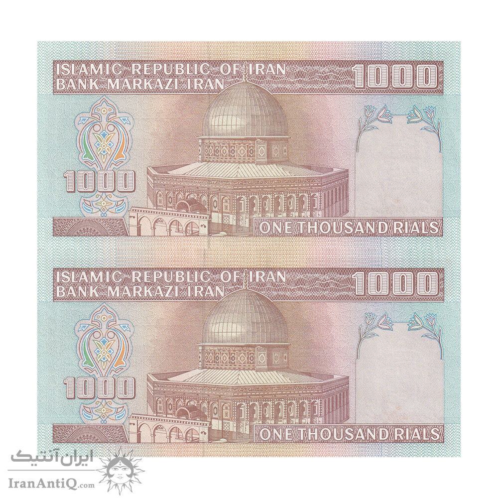 اسکناس 1000 ریال (ایروانی - قاسمی) فیلیگران بدون خط یقه - جفت - UNC61 - جمهوری اسلامی