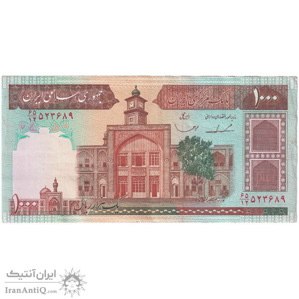 اسکناس 1000 ریال (ایروانی - قاسمی) فیلیگران بدون خط یقه - تک - EF45 - جمهوری اسلامی