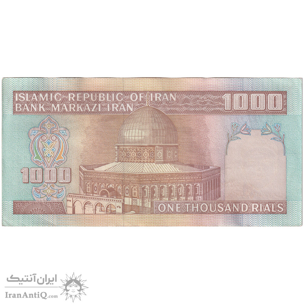 اسکناس 1000 ریال (ایروانی - قاسمی) فیلیگران بدون خط یقه - تک - AU53 - جمهوری اسلامی
