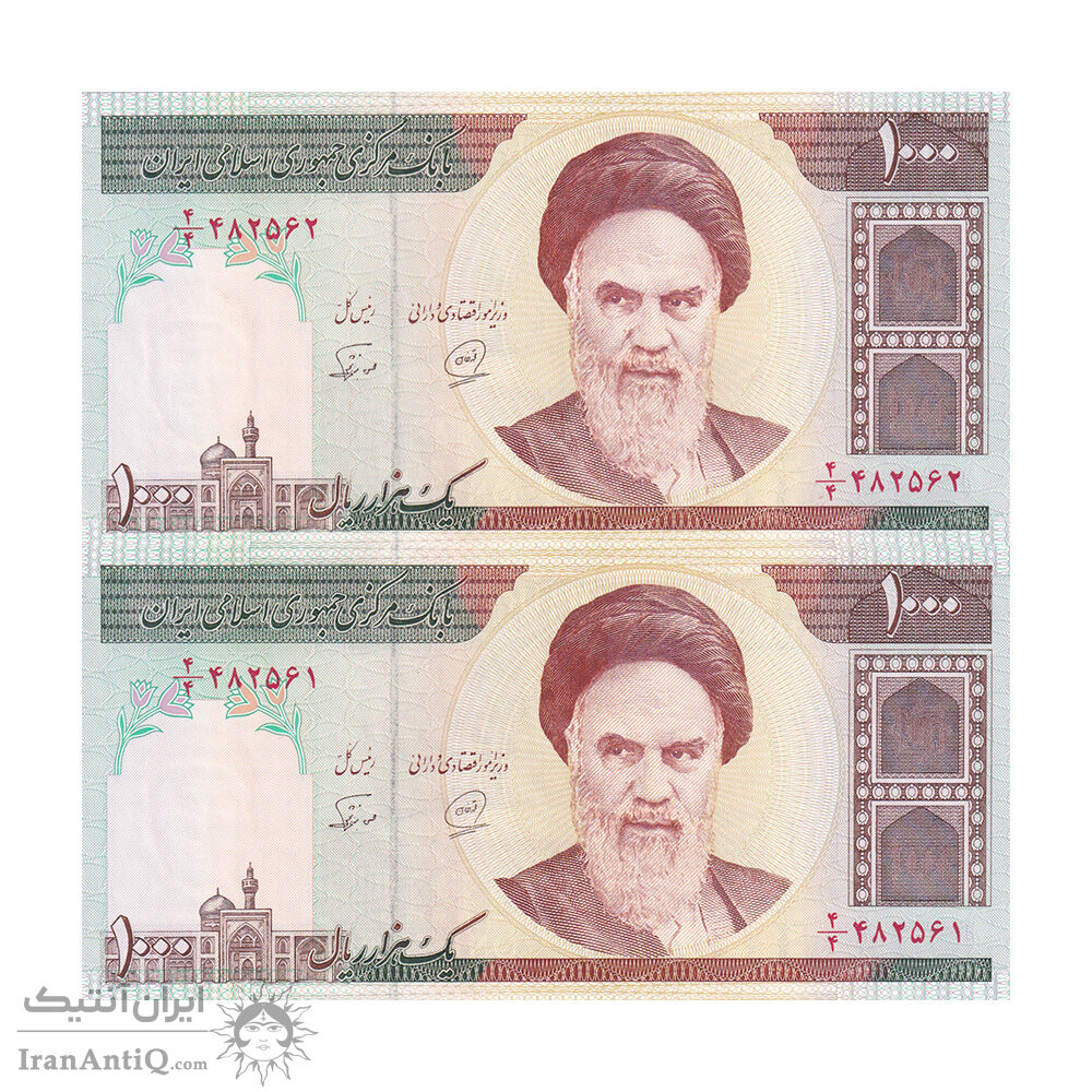 اسکناس 1000 ریال (محمدخان - نوربخش) تصویر امام - کسر یکسان - جفت - UNC64 - جمهوری اسلامی