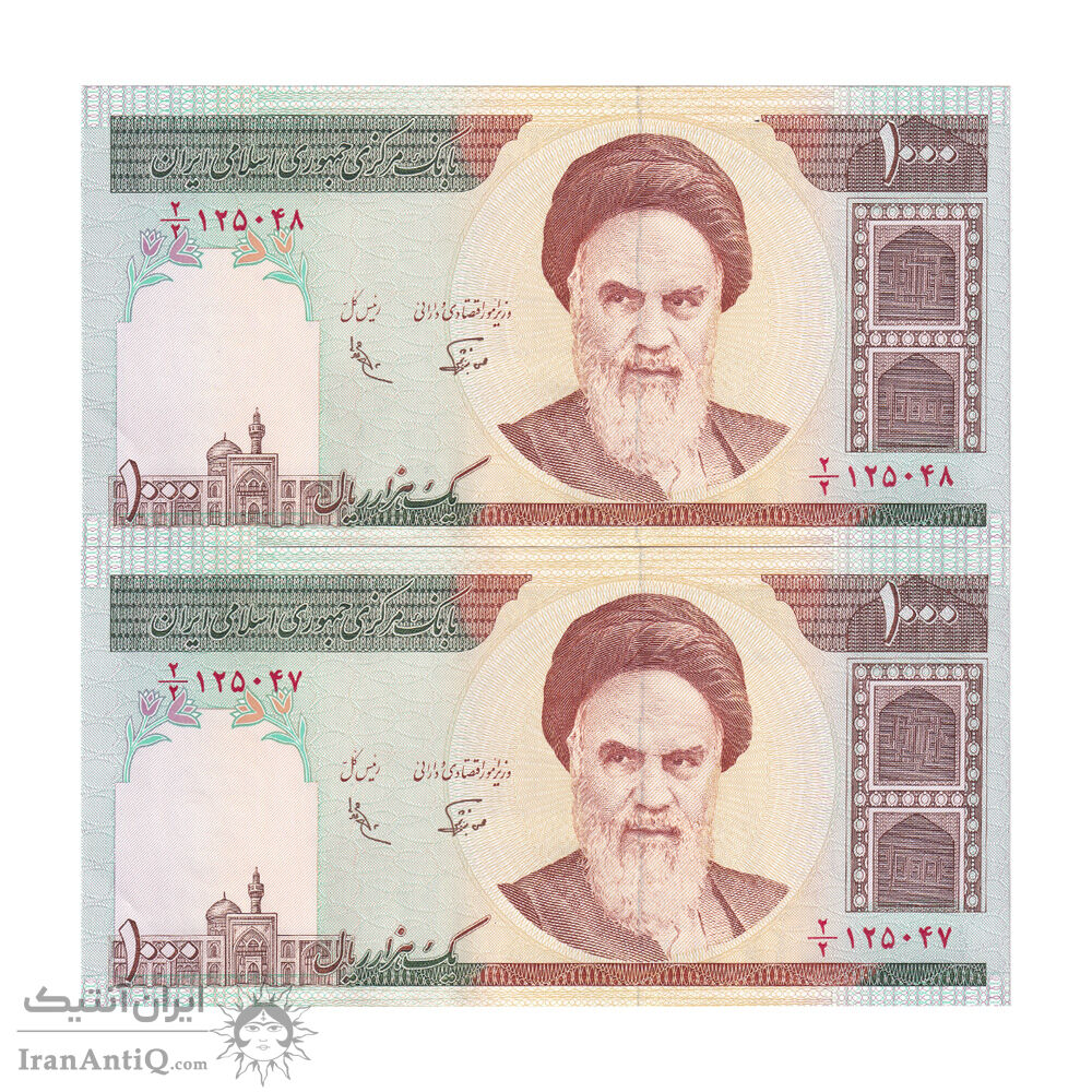 اسکناس 1000 ریال (نوربخش - عادلی) امام - کسر یکسان - جفت - UNC63 - جمهوری اسلامی