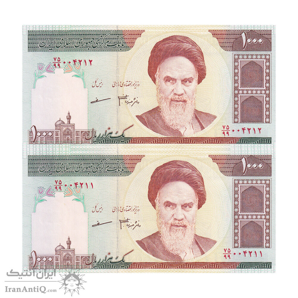 اسکناس 1000 ریال (جعفری - مظاهری) - جایگزین - جفت - UNC64 - جمهوری اسلامی