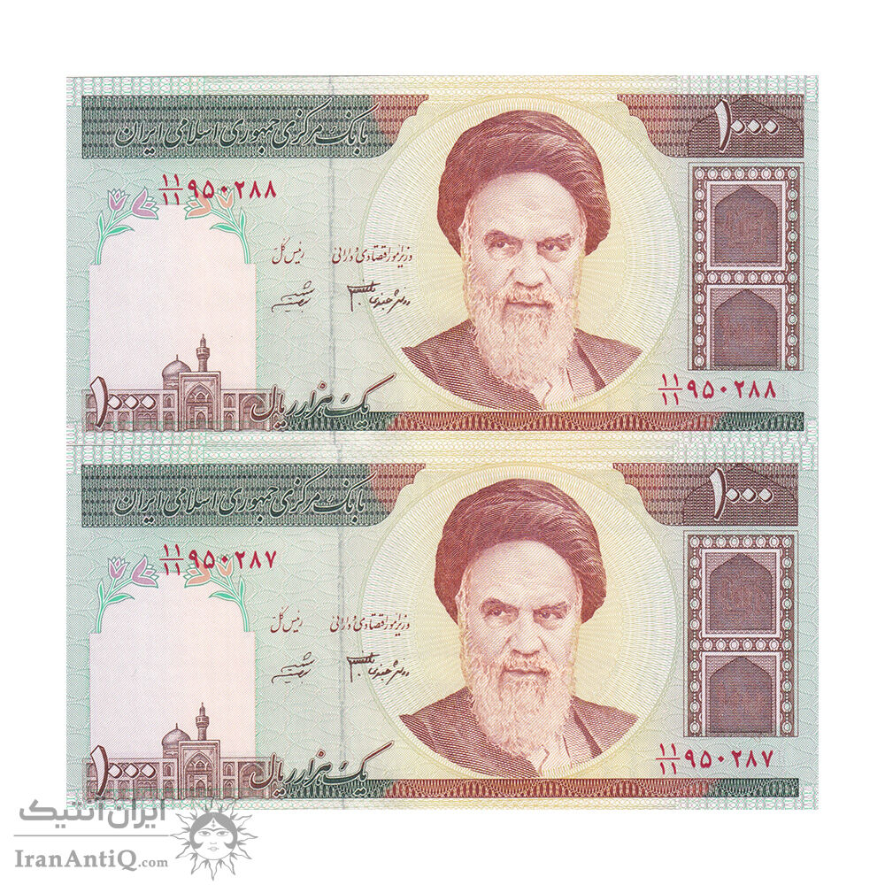 اسکناس 1000 ریال (جعفری - شیبانی) - کسر یکسان - جفت - UNC63 - جمهوری اسلامی