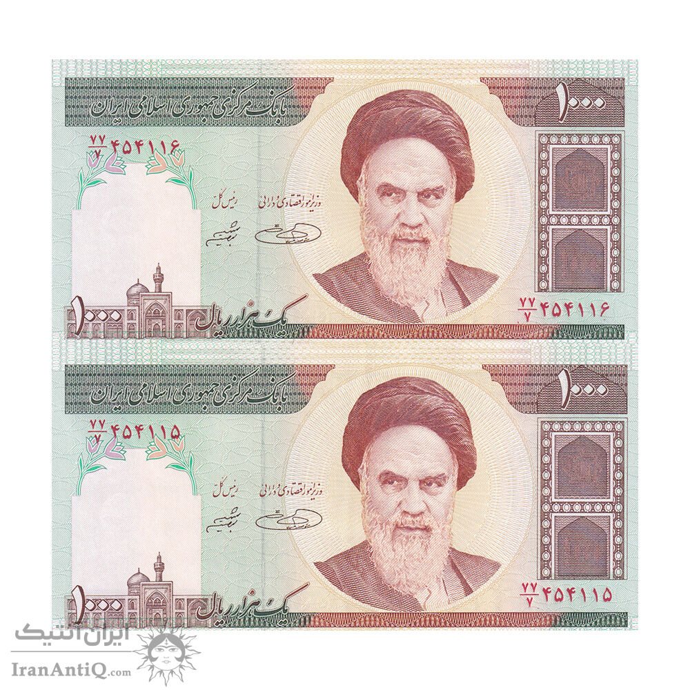 اسکناس 1000 ریال (حسینی - شیبانی) - کسر یکسان - جفت - UNC63 - جمهوری اسلامی