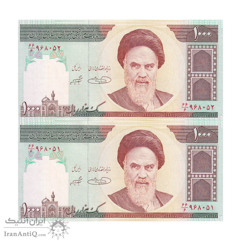 اسکناس 1000 ریال (حسینی - شیبانی) - کسر یکسان - جفت - UNC64 - جمهوری اسلامی