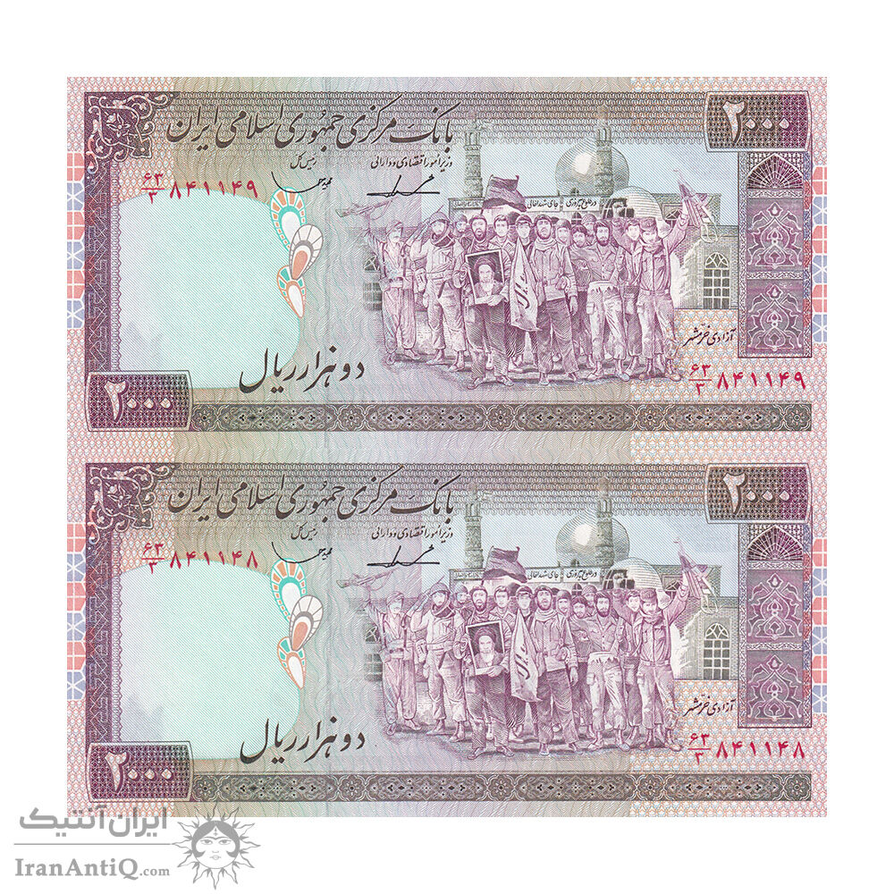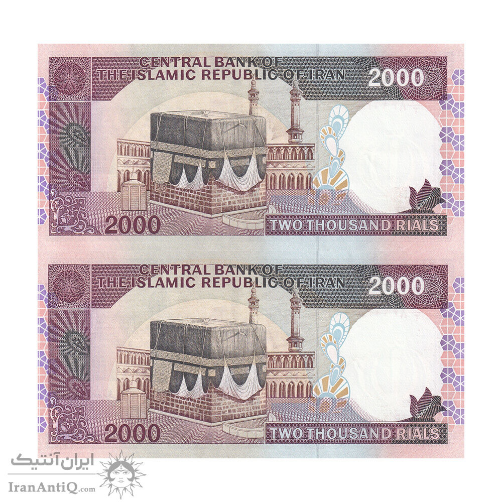 اسکناس 2000 ریال (ایروانی - قاسمی) - فیلیگران الله - شماره کوچک - شماره قرینه - جفت - UNC63 - جمهوری اسلامی