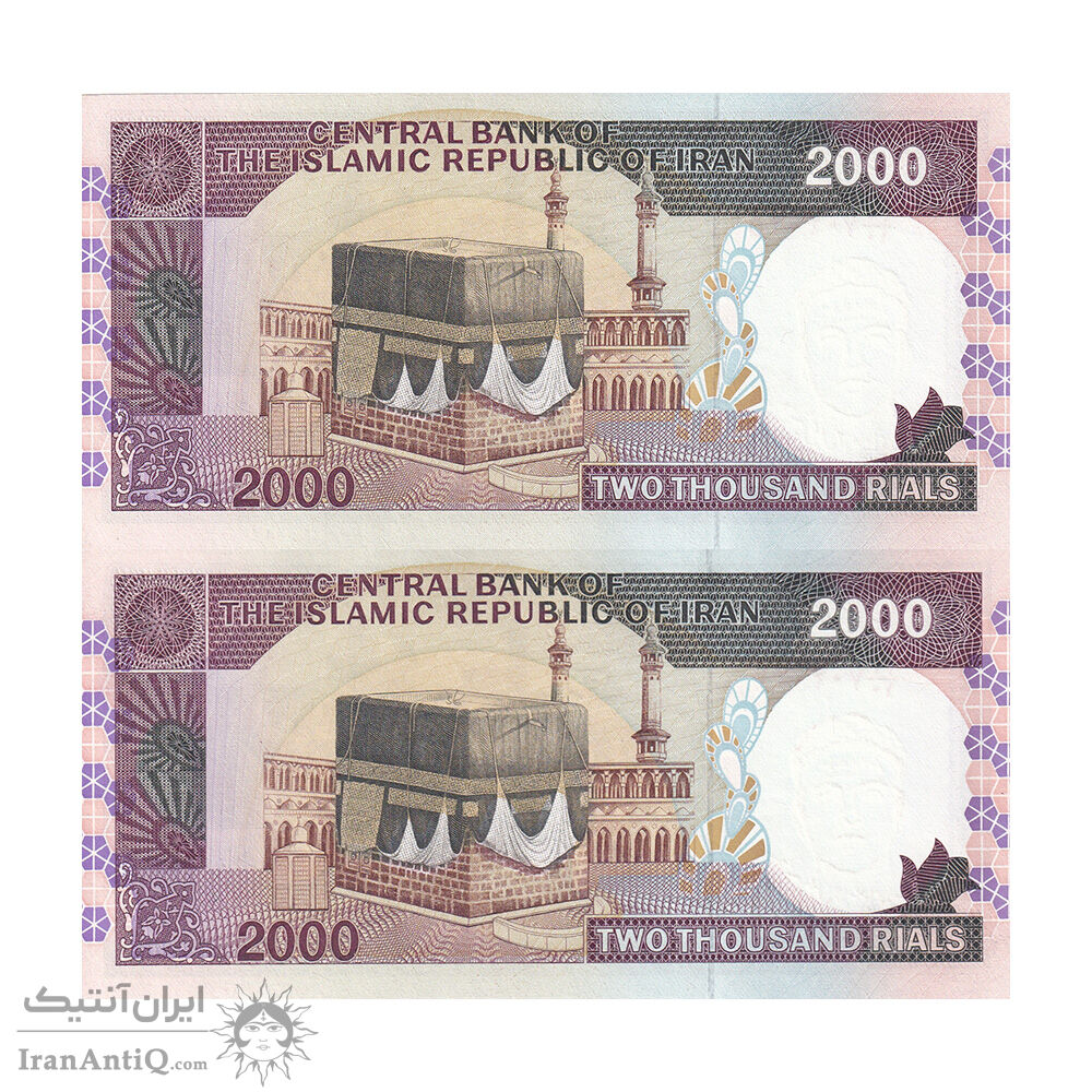 اسکناس 2000 ریال (نوربخش - عادلی) امضاء کوچک - شماره بزرگ - امضاء ماژیکی - جفت - UNC63 - جمهوری اسلامی