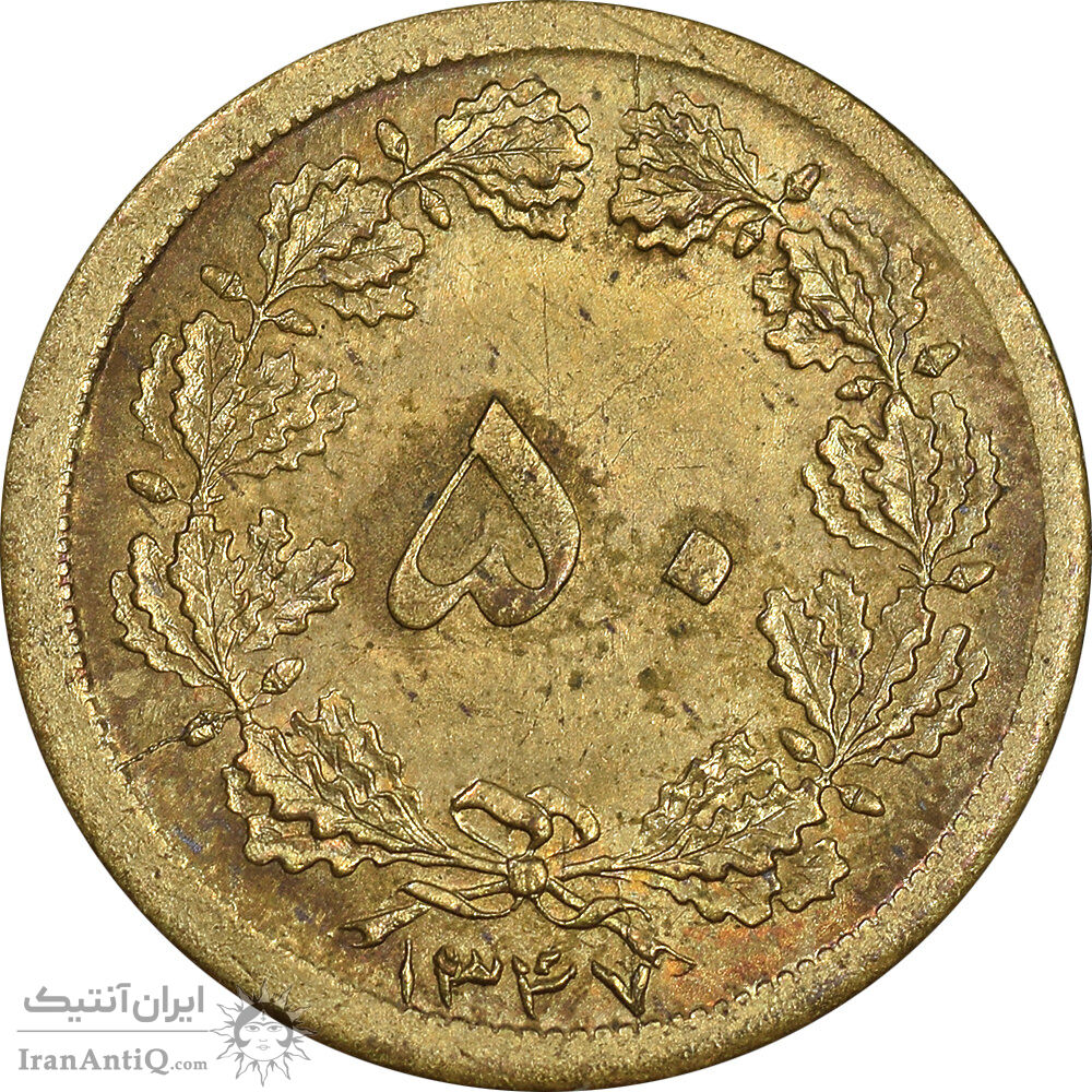 سکه 50 دینار 1347 برنز - MS62 - محمد رضا شاه