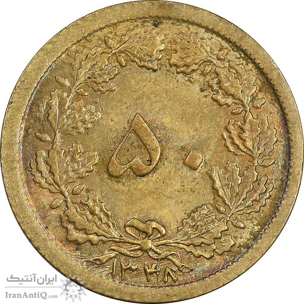 سکه 50 دینار 1348 برنز - MS62 - محمد رضا شاه