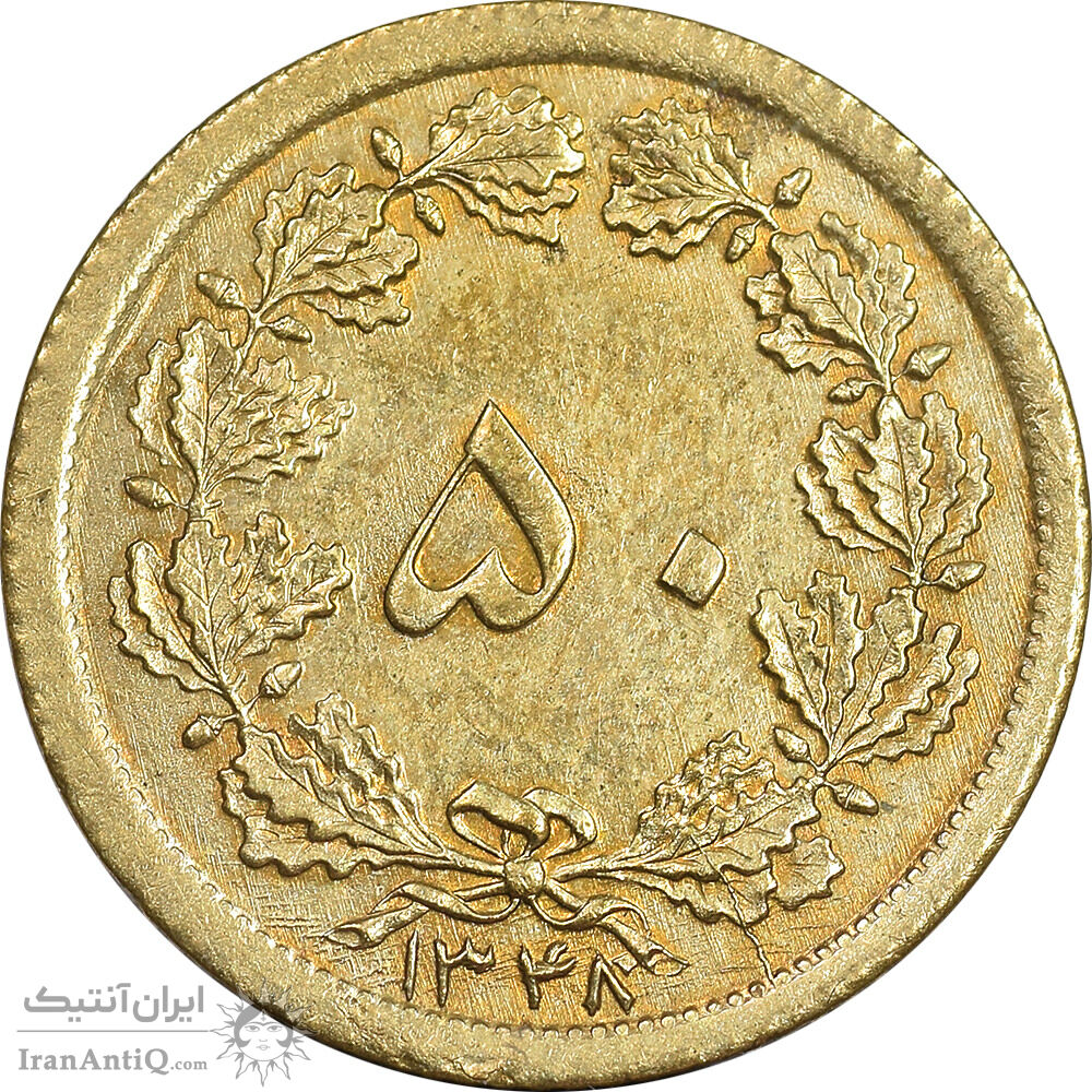 سکه 50 دینار 1348 برنز - AU58 - محمد رضا شاه