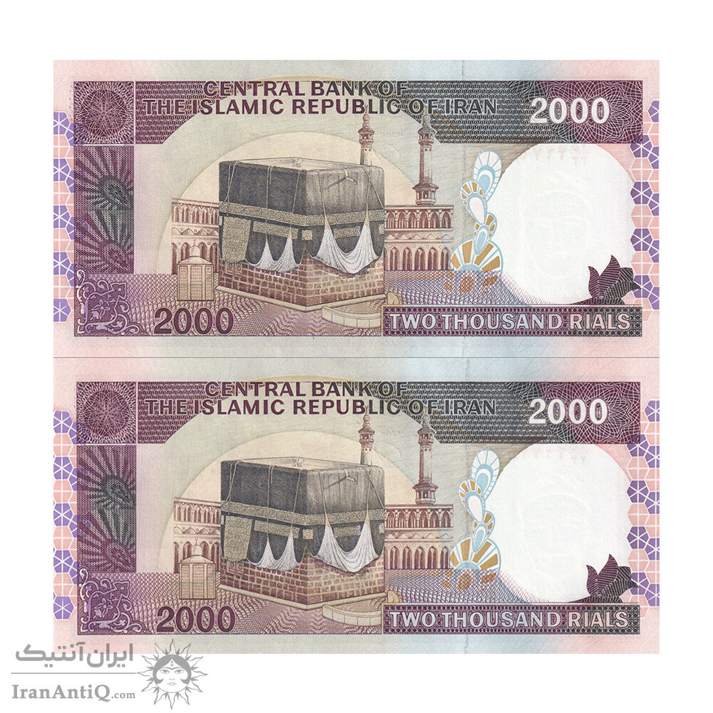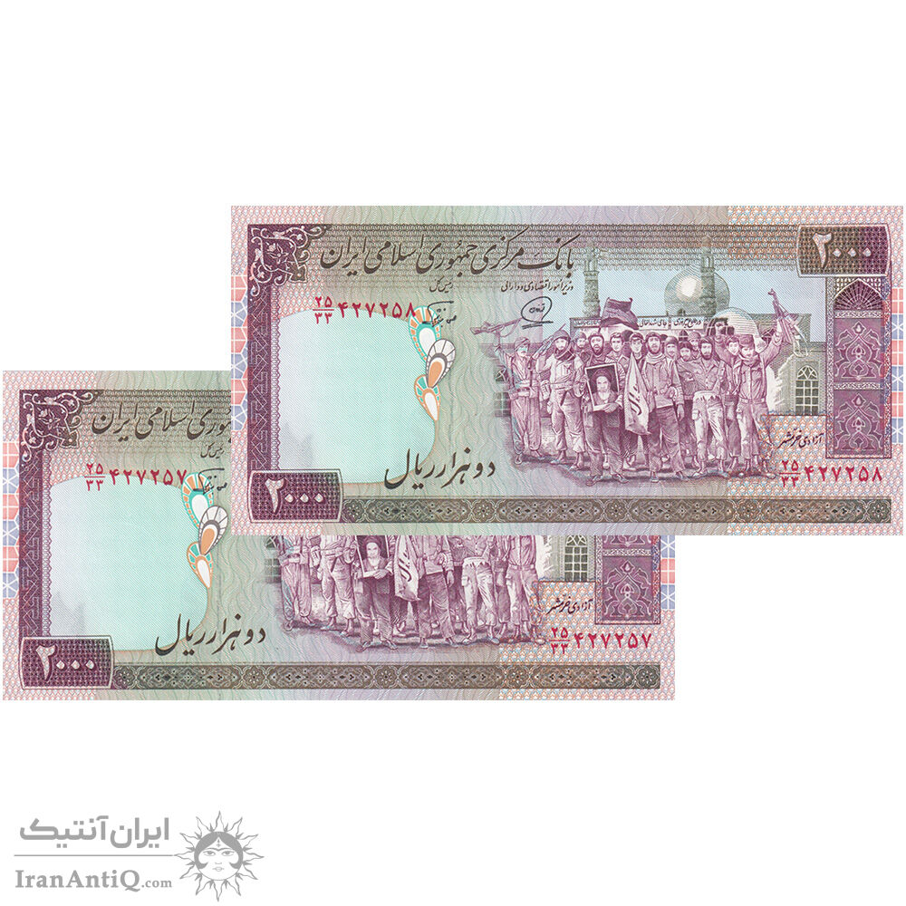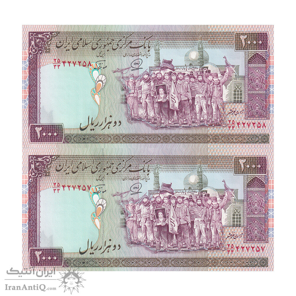 اسکناس 2000 ریال (محمدخان - نوربخش) شماره بزرگ - نخ نستعلیق - جایگزین - جفت - UNC63 - جمهوری اسلامی