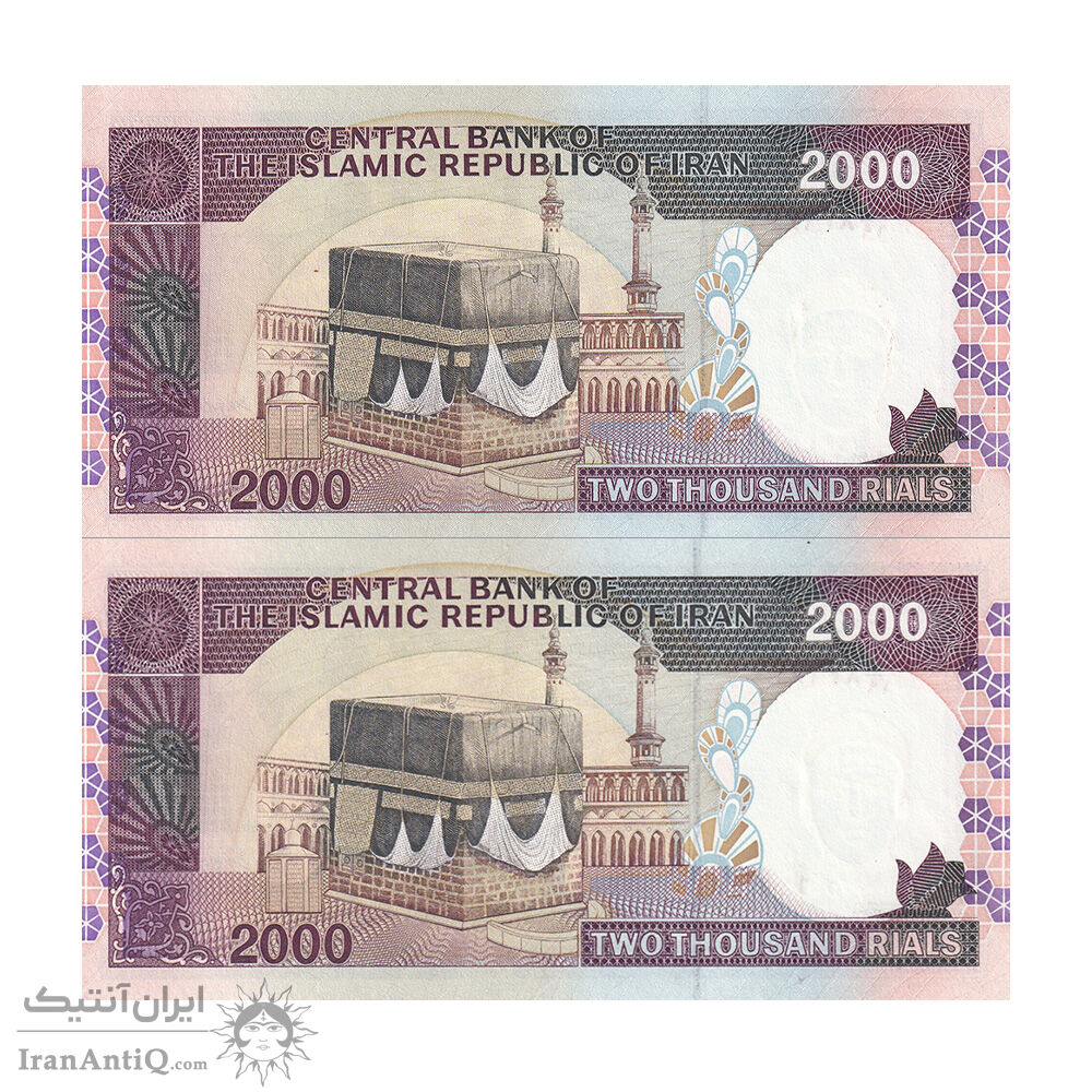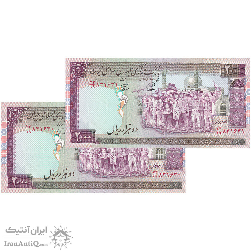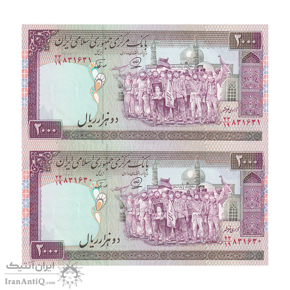 اسکناس 2000 ریال (محمدخان - نوربخش) شماره بزرگ - نخ کامپیوتری - ارور فیلیگران - جفت - UNC61 - جمهوری اسلامی