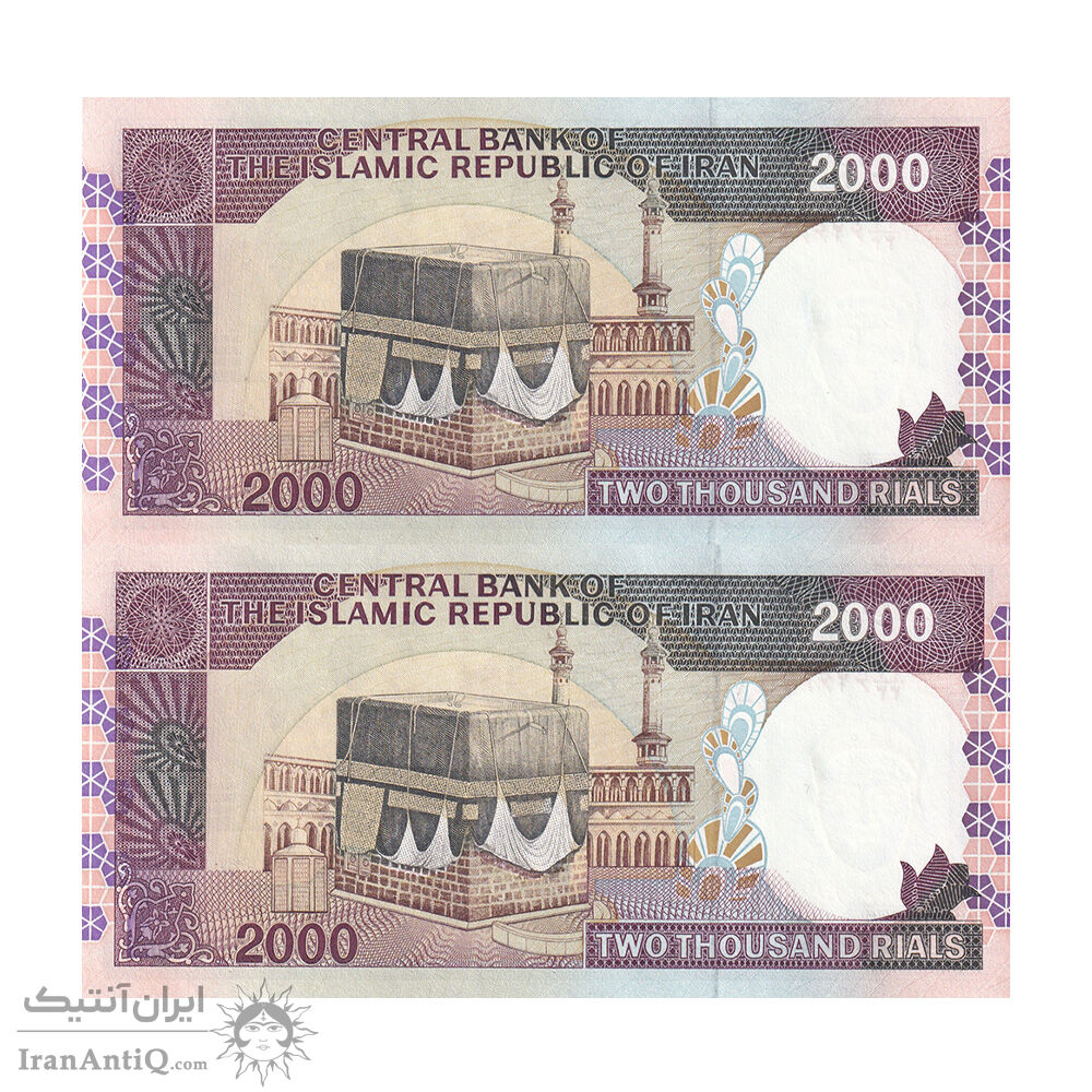 اسکناس 2000 ریال (محمدخان - نوربخش) شماره بزرگ - نخ کامپیوتری - جایگزین - جفت - UNC63 - جمهوری اسلامی