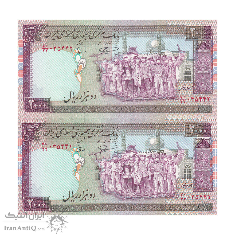 اسکناس 2000 ریال (نمازی - نوربخش) فیلیگران امام - جفت - UNC61 - جمهوری اسلامی