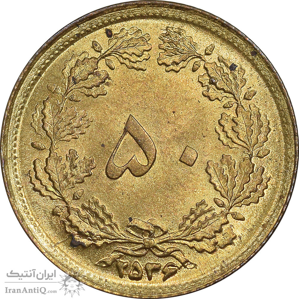 iran 50 dinar 2536 coin - MS62 - mohammad reza shah