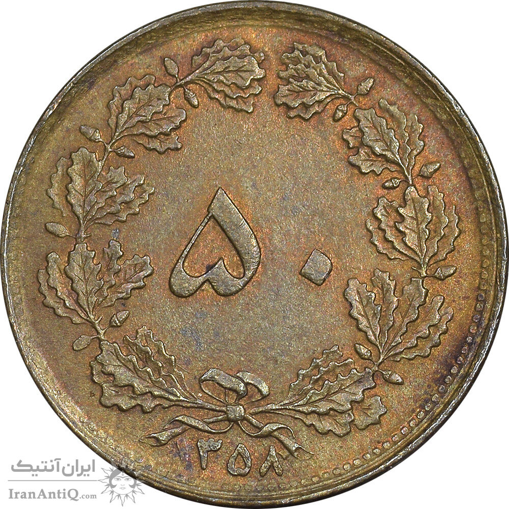 iran 50 dinar 1358 coin - rotate 180 degree - EF45 - islamic republic