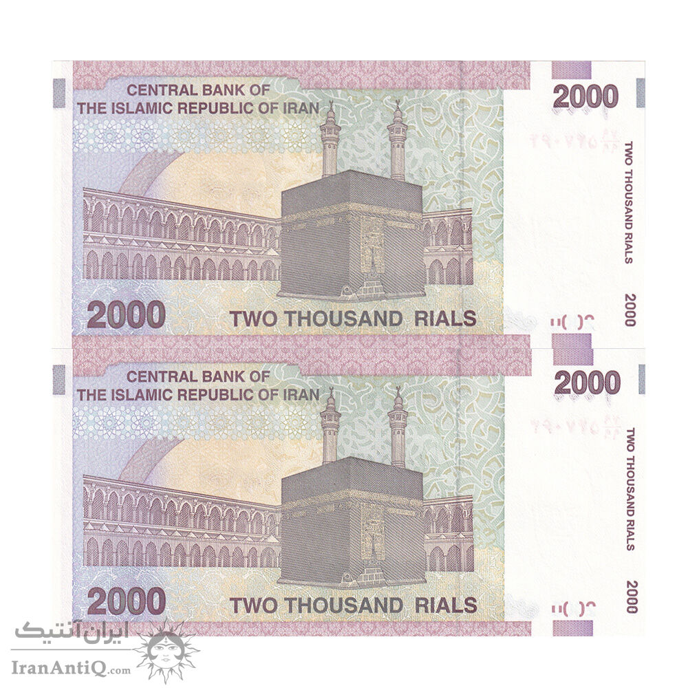 اسکناس 2000 ریال (جعفری - مظاهری) - جایگزین - جفت - UNC64 - جمهوری اسلامی