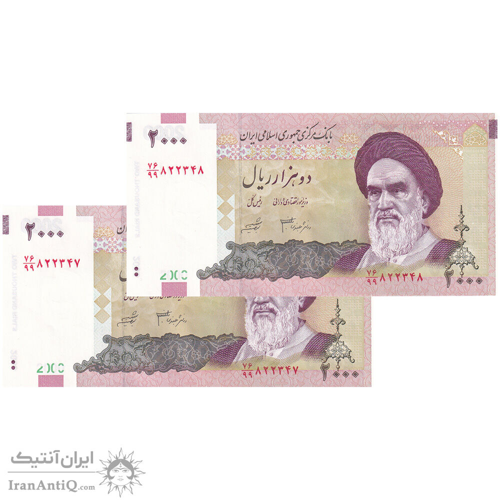 اسکناس 2000 ریال (جعفری - شیبانی) - جایگزین - جفت - UNC62 - جمهوری اسلامی