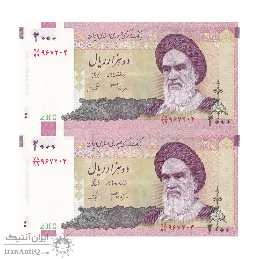 اسکناس 2000 ریال (جعفری - شیبانی) - جایگزین - جفت - UNC63 - جمهوری اسلامی
