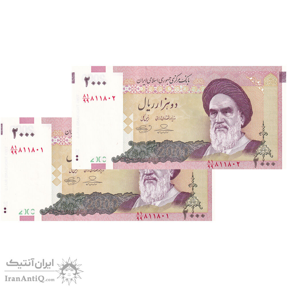 اسکناس 2000 ریال (حسینی - بهمنی) - جایگزین - جفت - UNC64 - جمهوری اسلامی