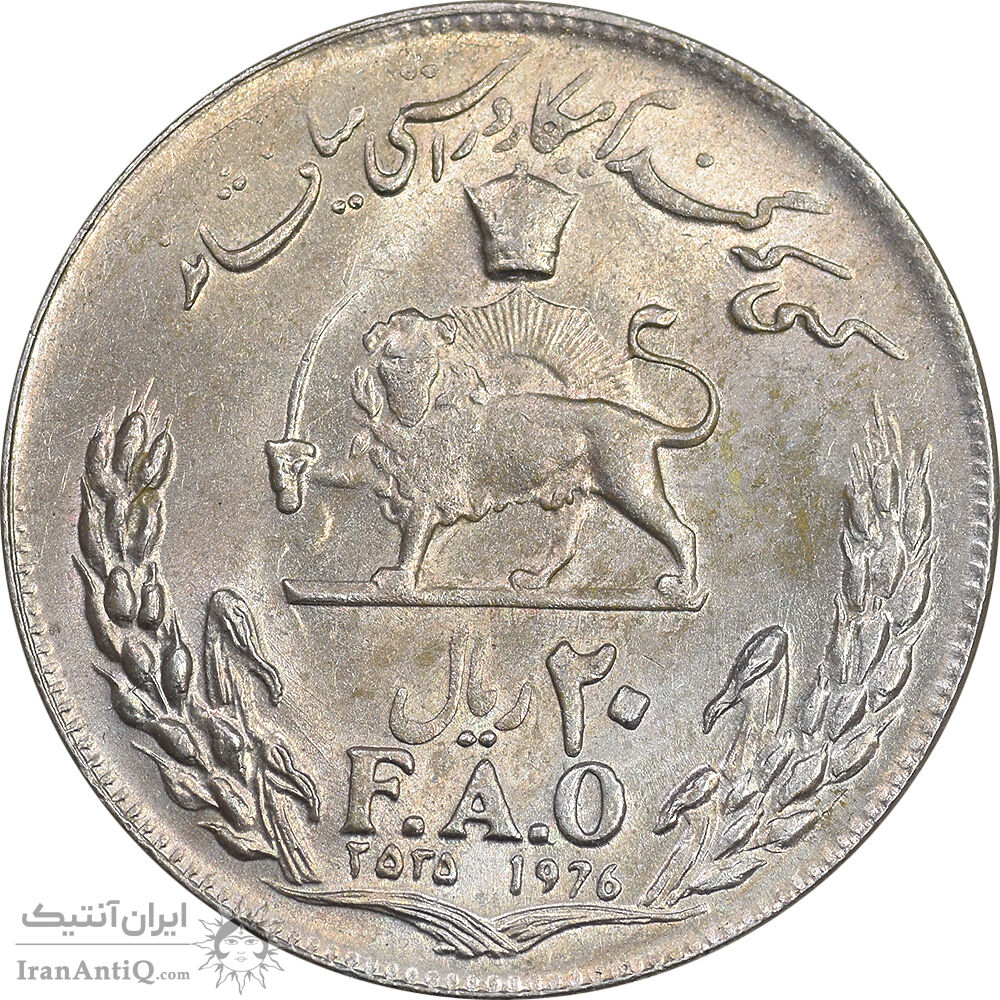 Iran 20 rials 2535 F.A.O coin - MS61 - mohammad reza shah