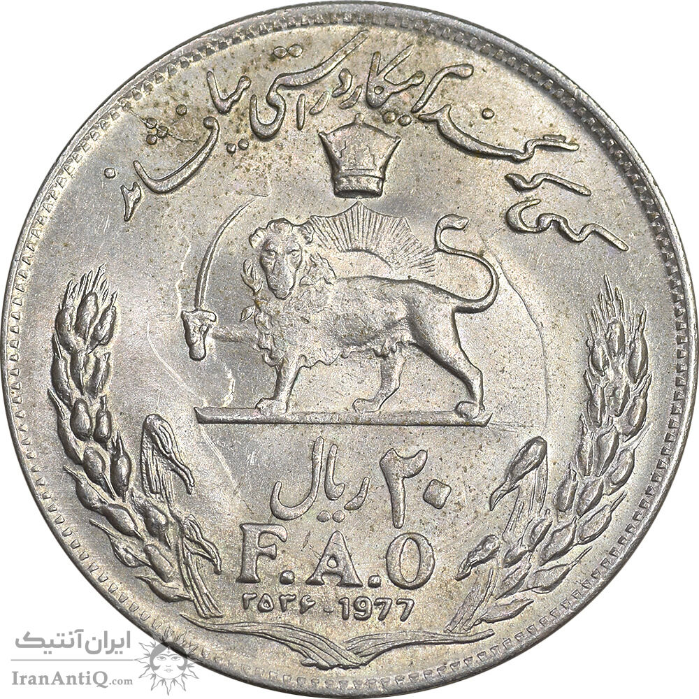 Iran 20 rials 2536 F.A.O coin - MS63 - mohammad reza shah