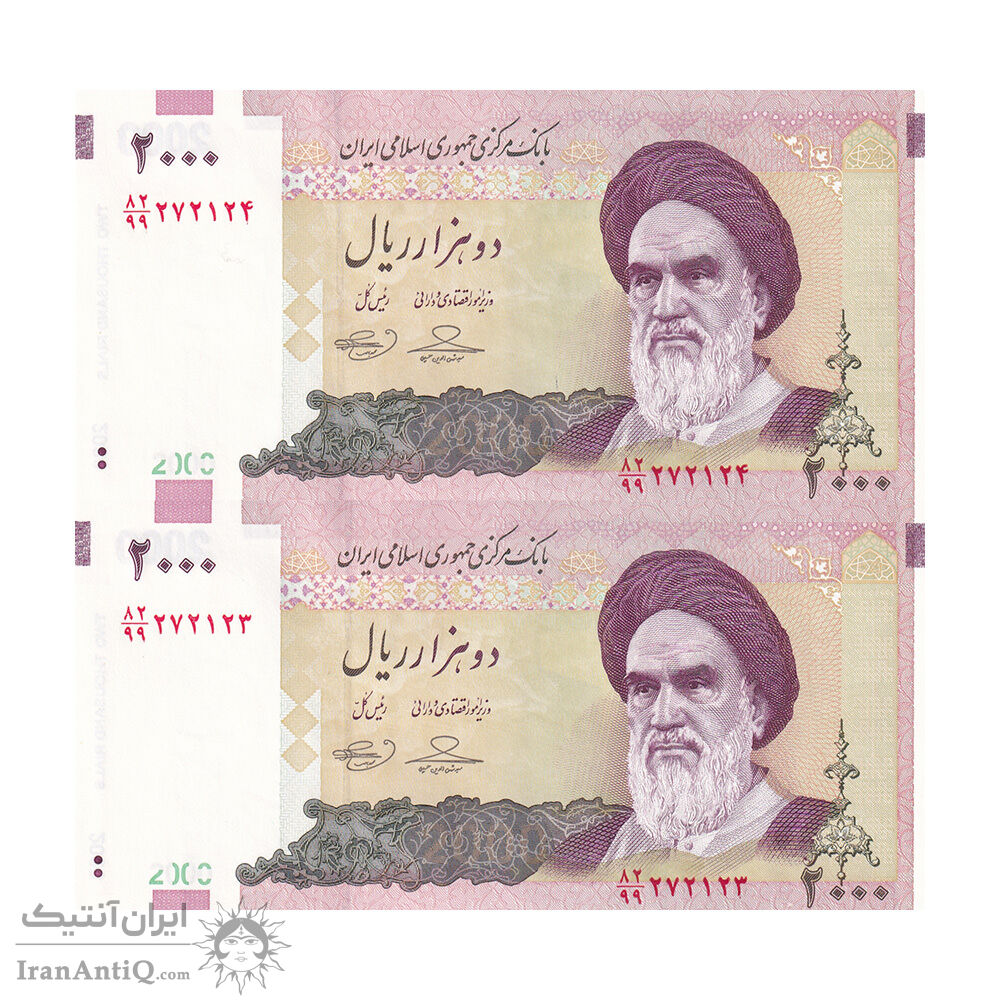 اسکناس 2000 ریال (حسینی - بهمنی) - جایگزین - جفت - UNC64 - جمهوری اسلامی