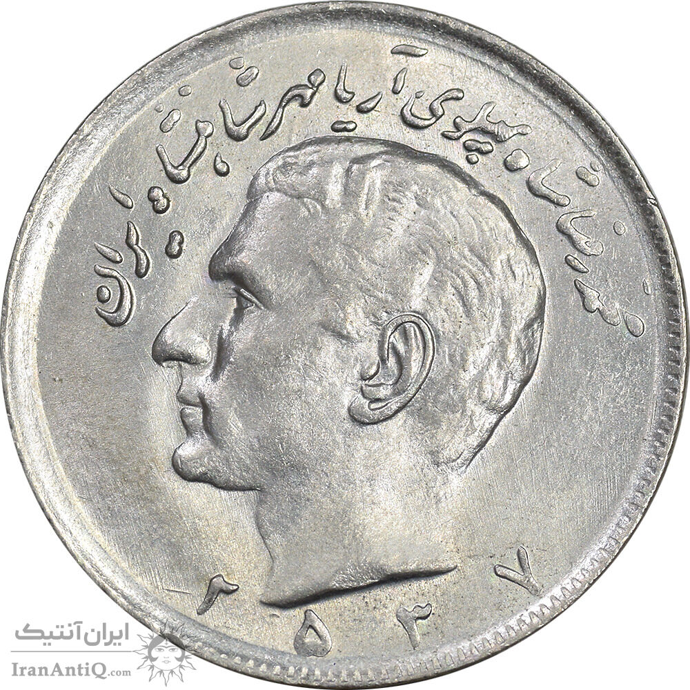 سکه 20 ریال 2537 - MS63 - محمد رضا شاه