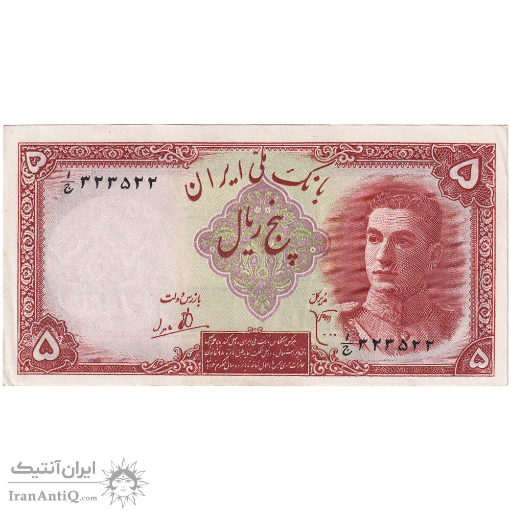 اسکناس 5 ریال - تک - AU58 - محمد رضا شاه