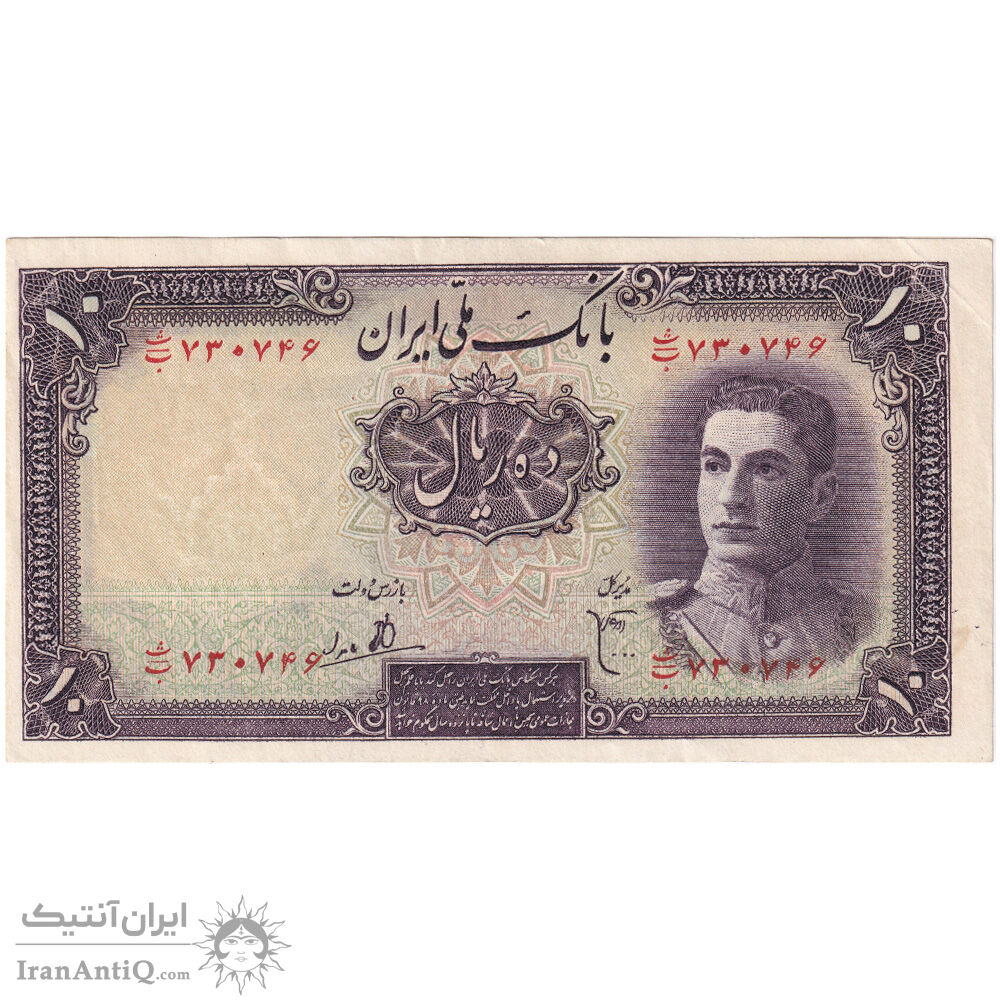 اسکناس 10 ریال سری اول- ارور کادر - تک - AU53 - محمد رضا شاه