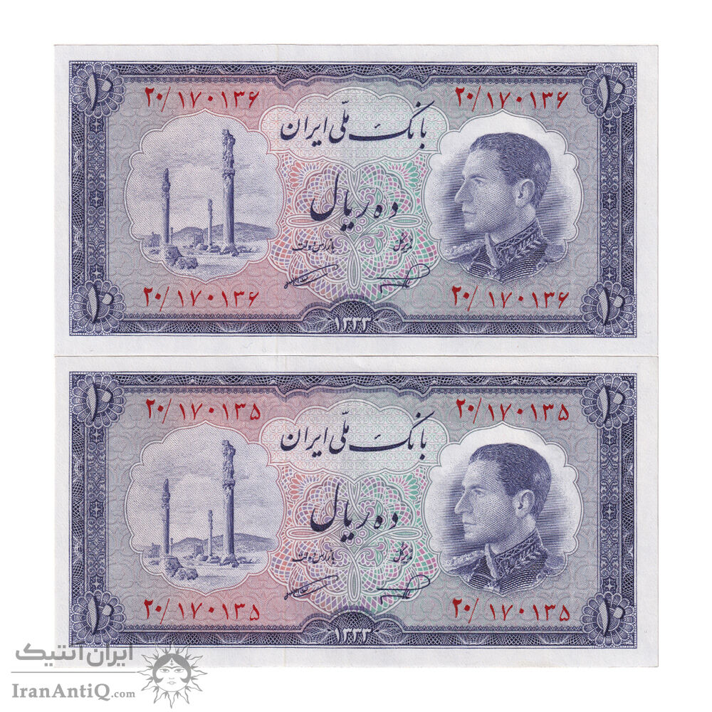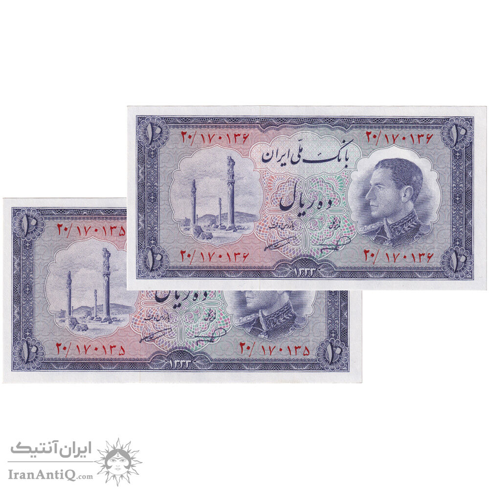 اسکناس 10 ریال 1333 - جفت - UNC63 - محمد رضا شاه